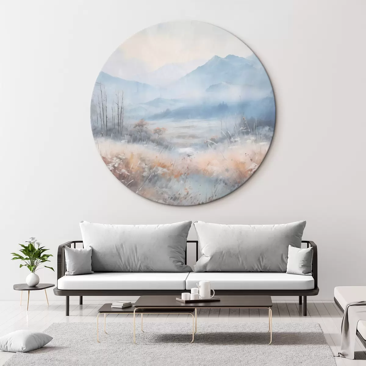 Tableaux rondes Paysage texturé avec des montagnes, de l'herbe sèche et une forêt, couleurs sourdes Nr r44402
