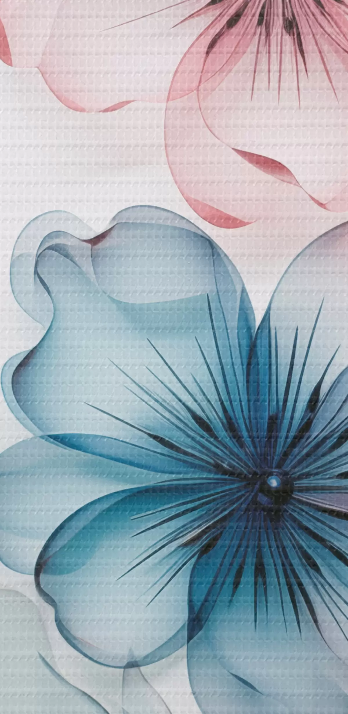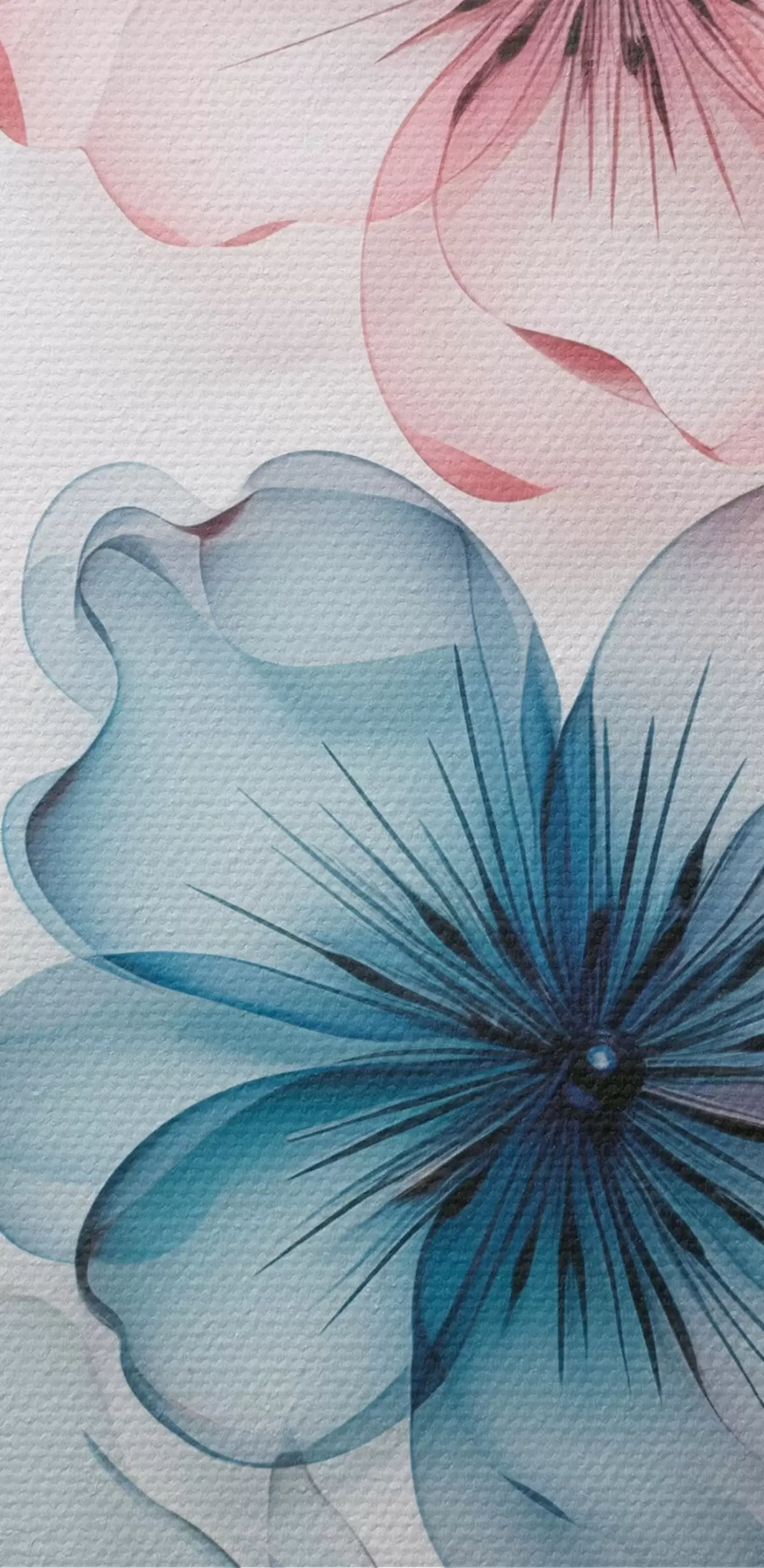 Tableaux rondes Fleurs translucides roses et bleues avec étamines et tiges visibles Nr r44405