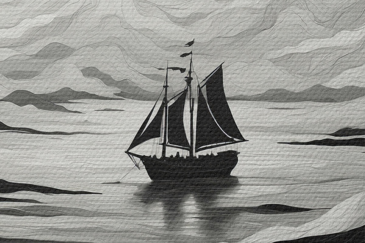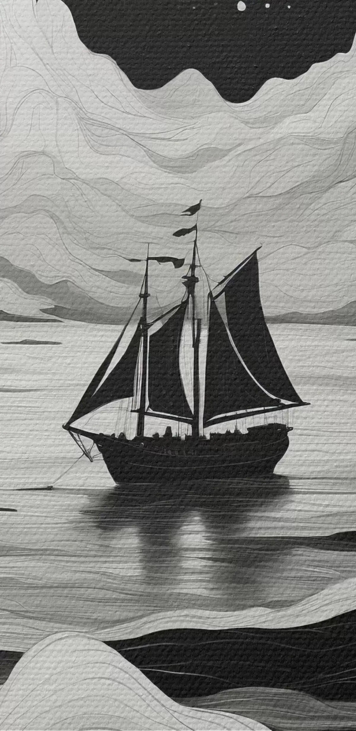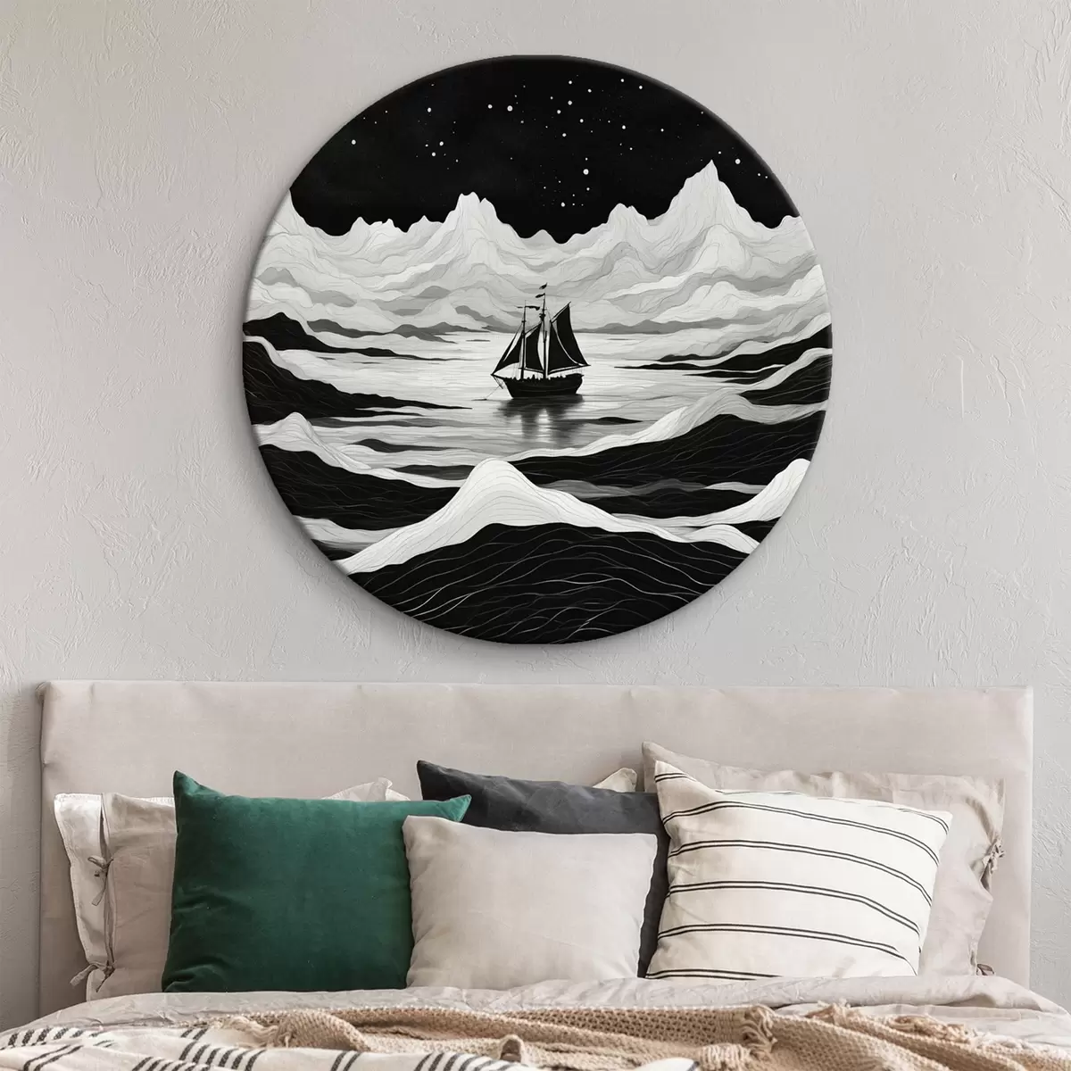 Tableaux rondes Navire dans la mer brumeuse de la nuit r44437