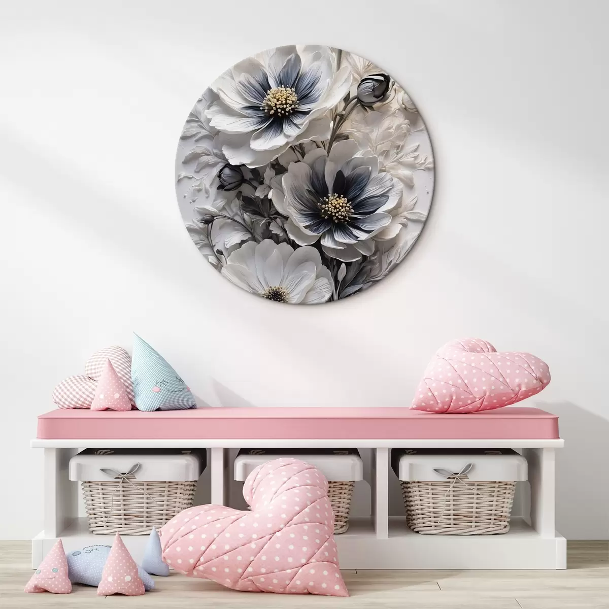 Tableaux rondes Fleurs noires et blanches sur fond blanc Nr r44446