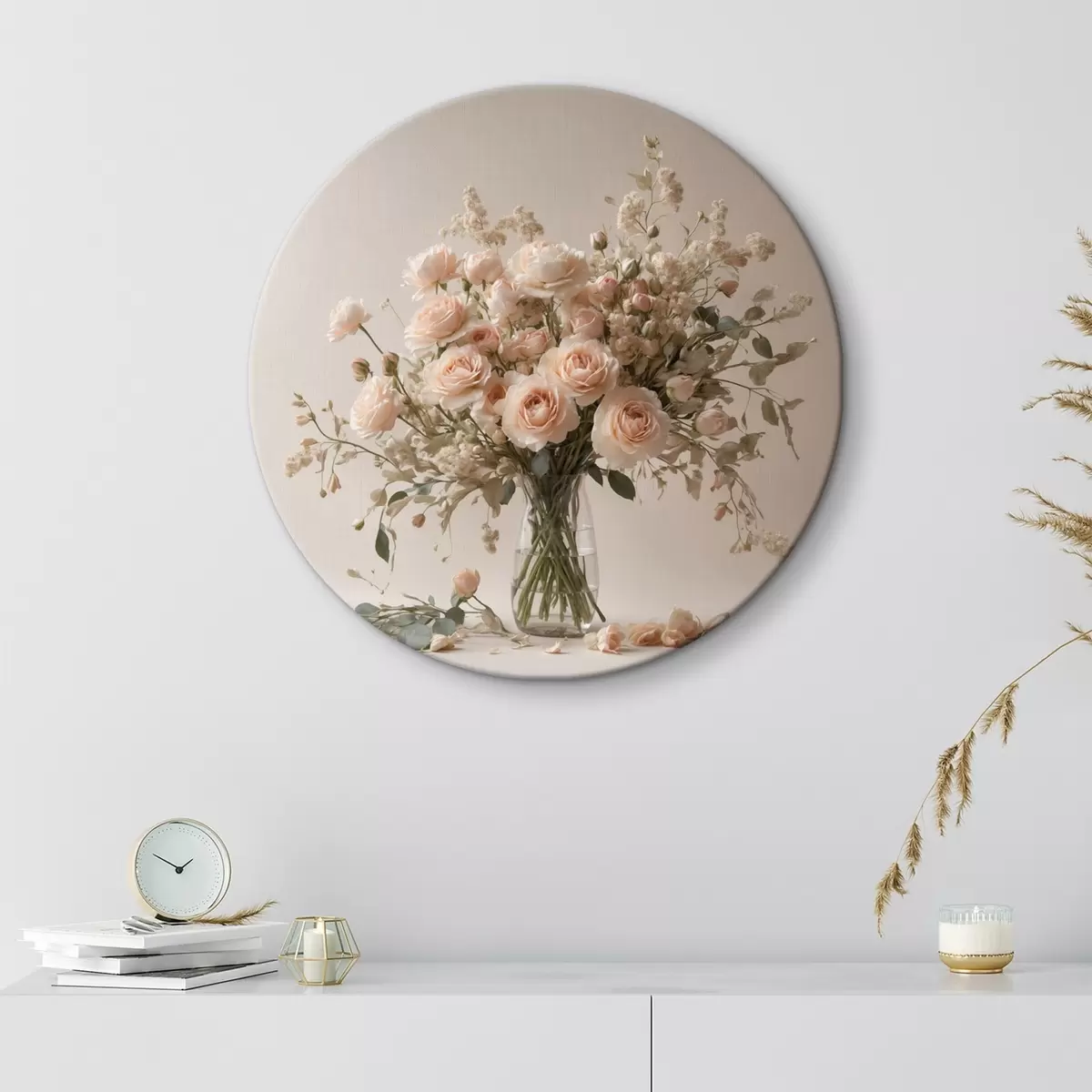Tableaux rondes Roses blanches dans un vase transparent r44451