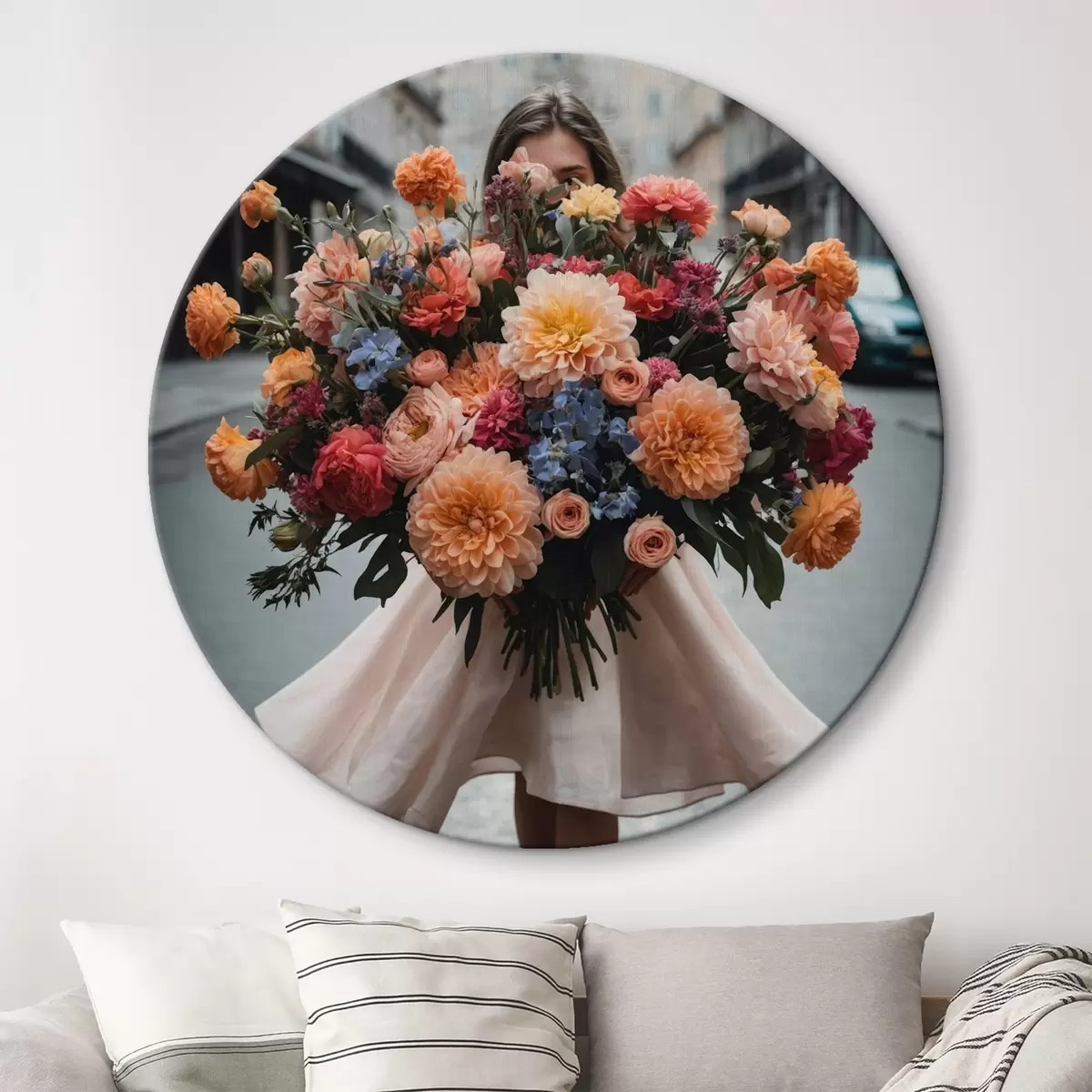 Tableaux rondes Fille avec des fleurs r44474