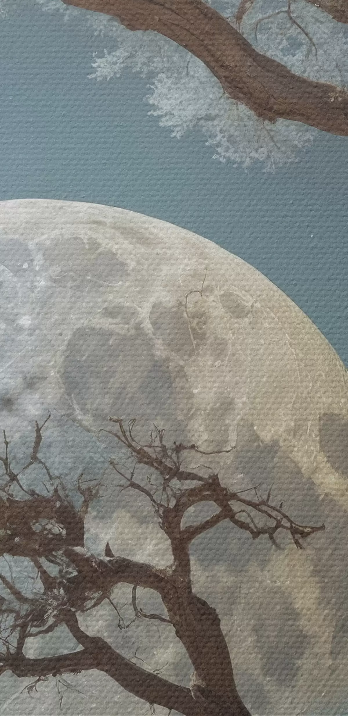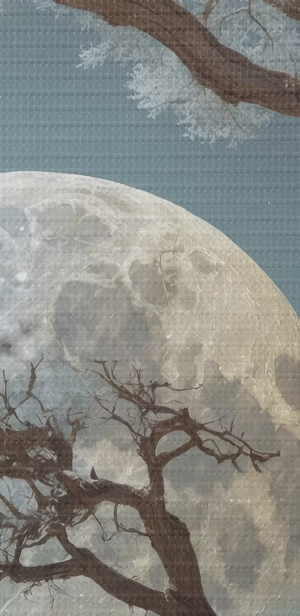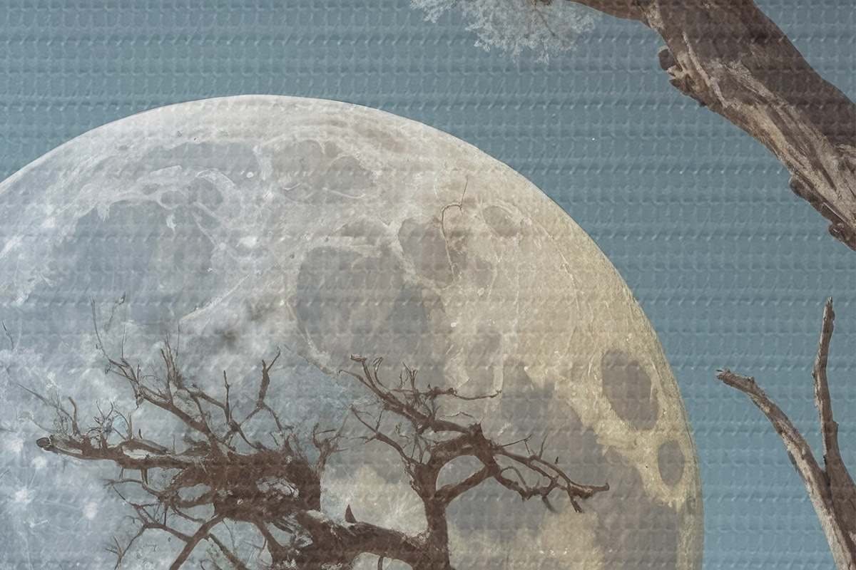 Tableaux rondes Arbre poussant au milieu d'un lac sur fond de lune Nr r44481