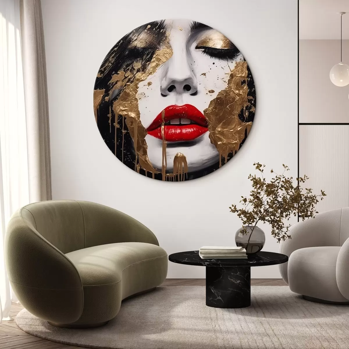 Tableaux rondes Visage aux lèvres rouges Nr r44492