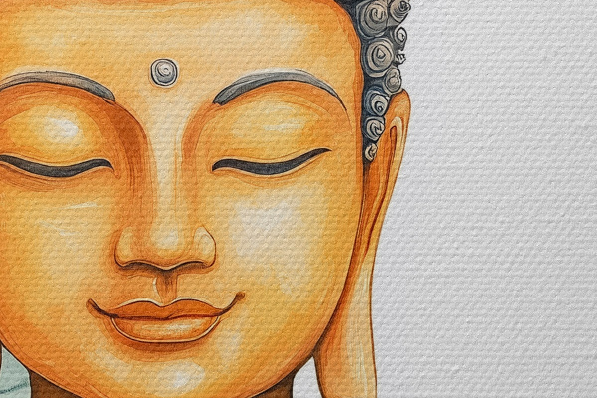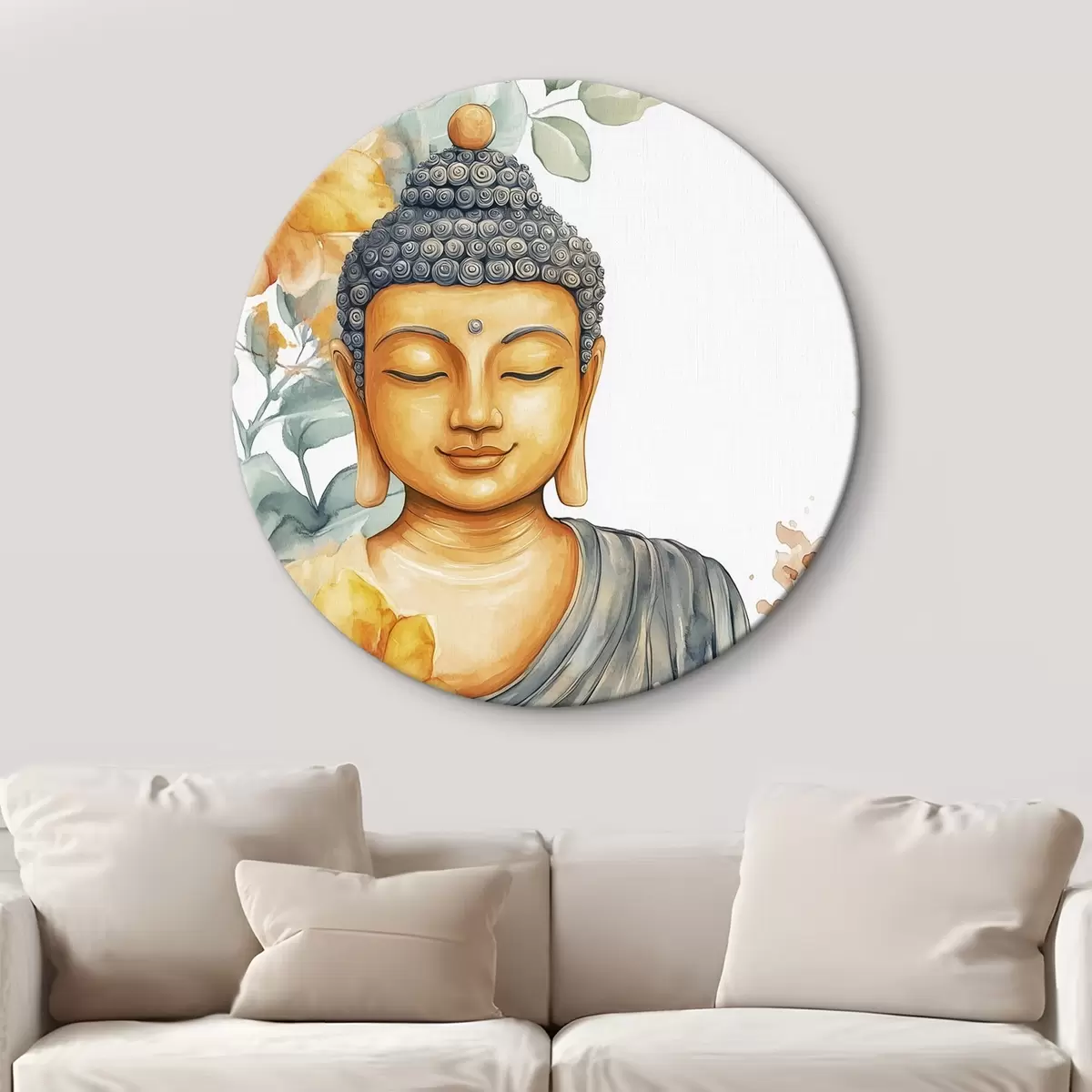 Tableaux rondes Bouddha entouré de fleurs orange, style aquarelle Nr r44508