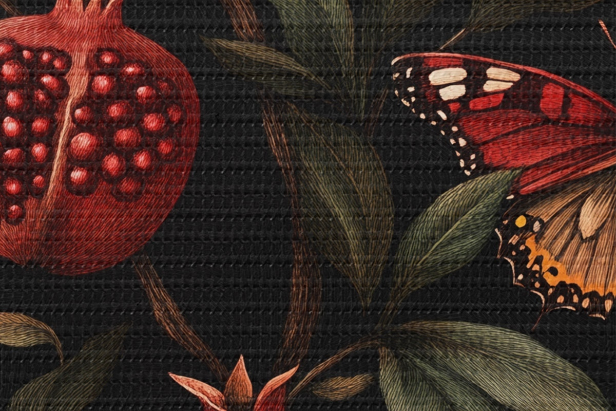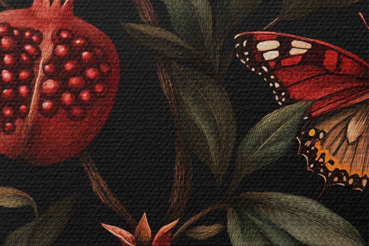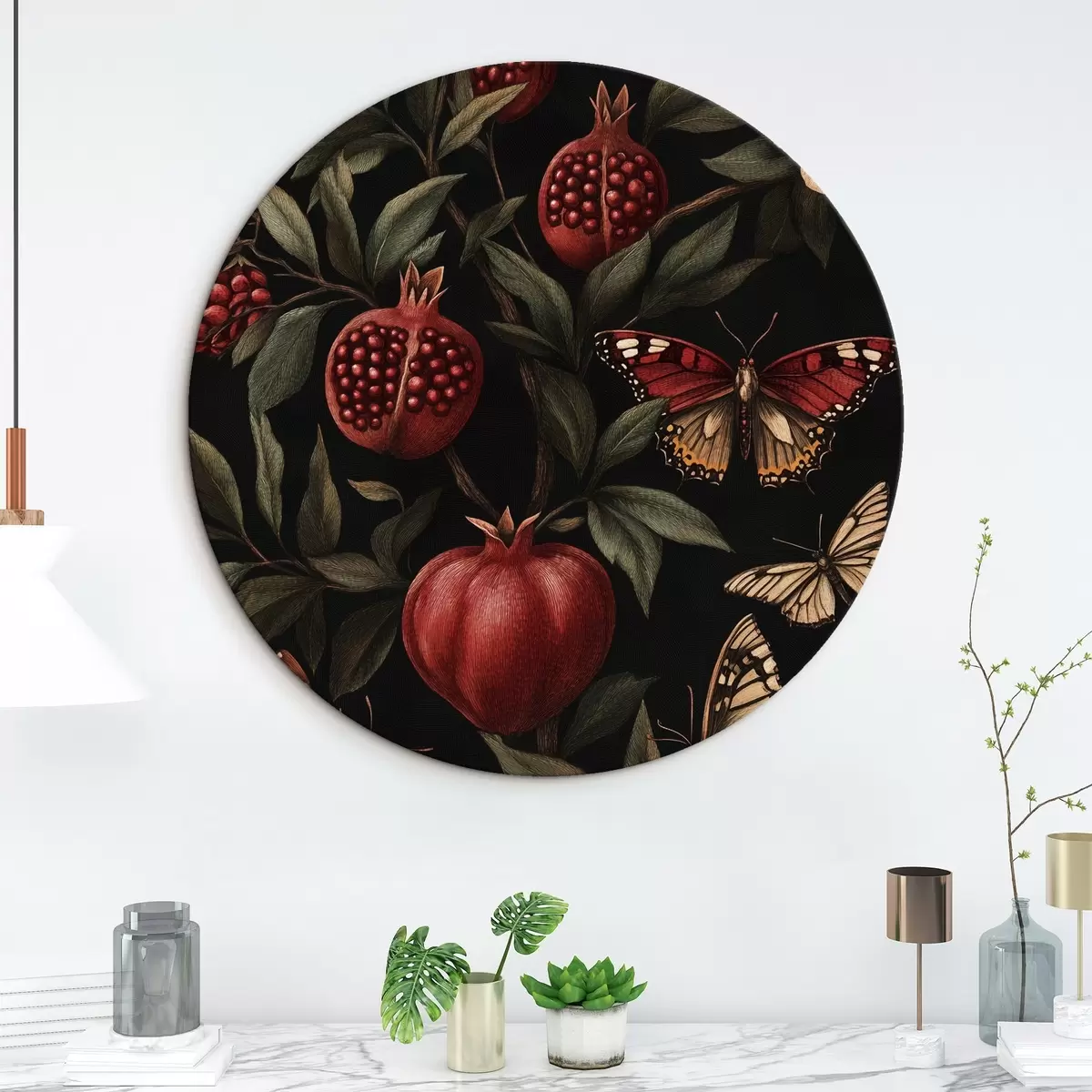 Tableaux rondes Art botanique avec grenades et papillons r44511