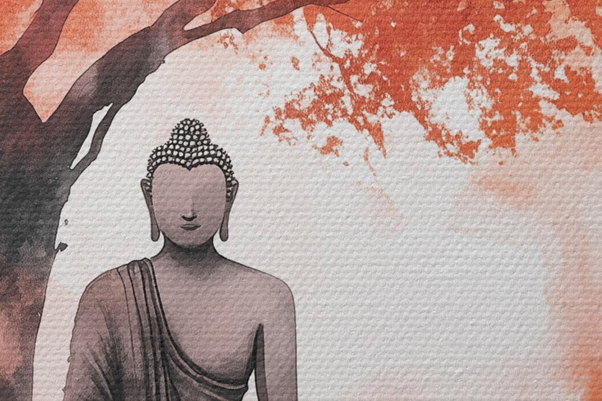 Tableaux rondes Bouddha assis sous l'arbre, méditation, spirituel, couleurs orange r44512