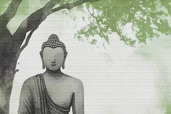 Tableaux rondes Bouddha assis sous l'arbre, méditation, spirituel, couleurs vertes Nr r44512v1
