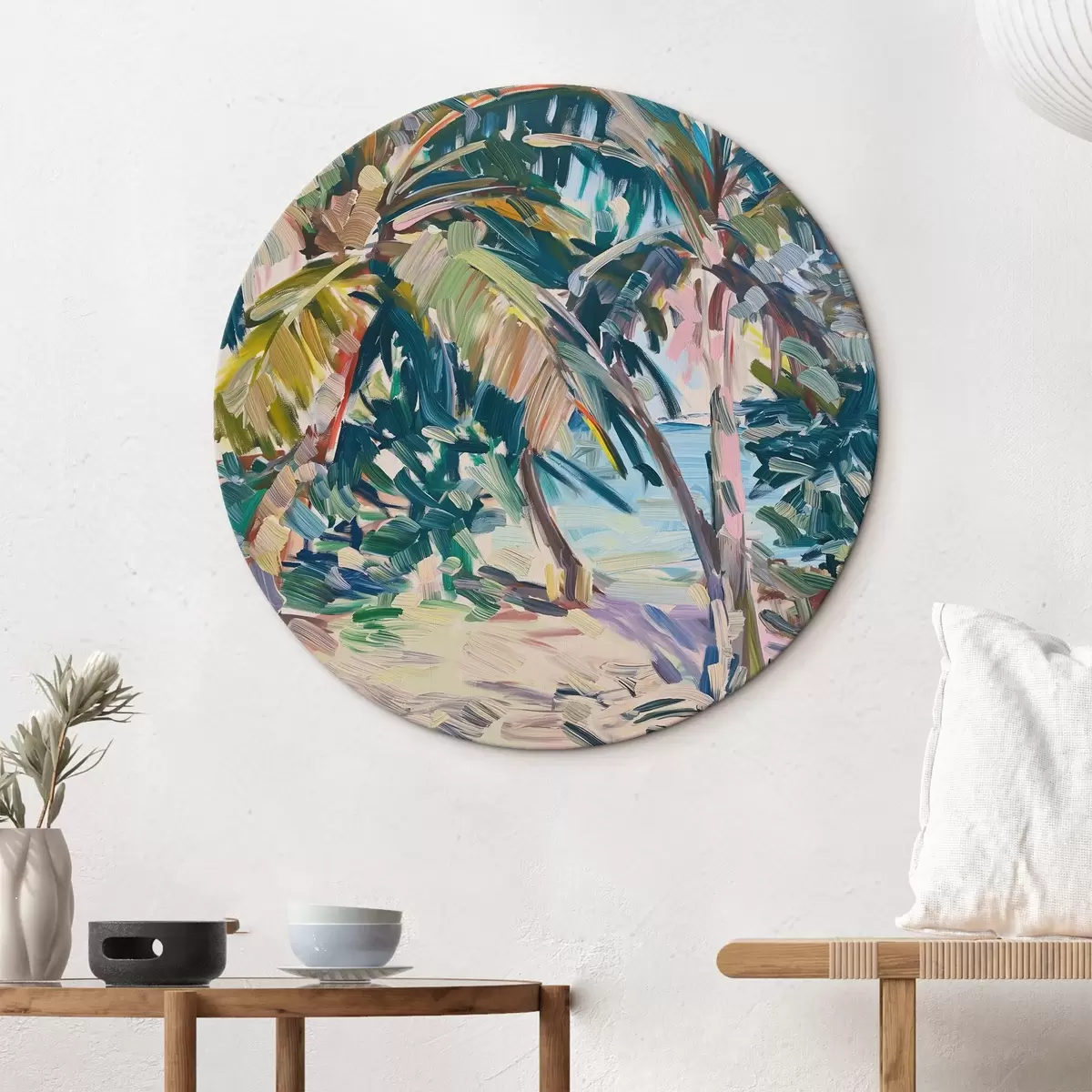 Tableaux rondes Palmiers abstraction, imitation de coups de pinceau Nr r44513