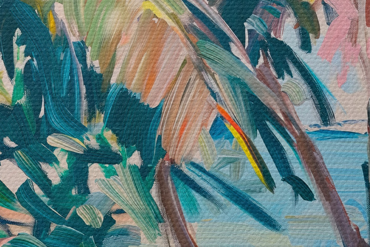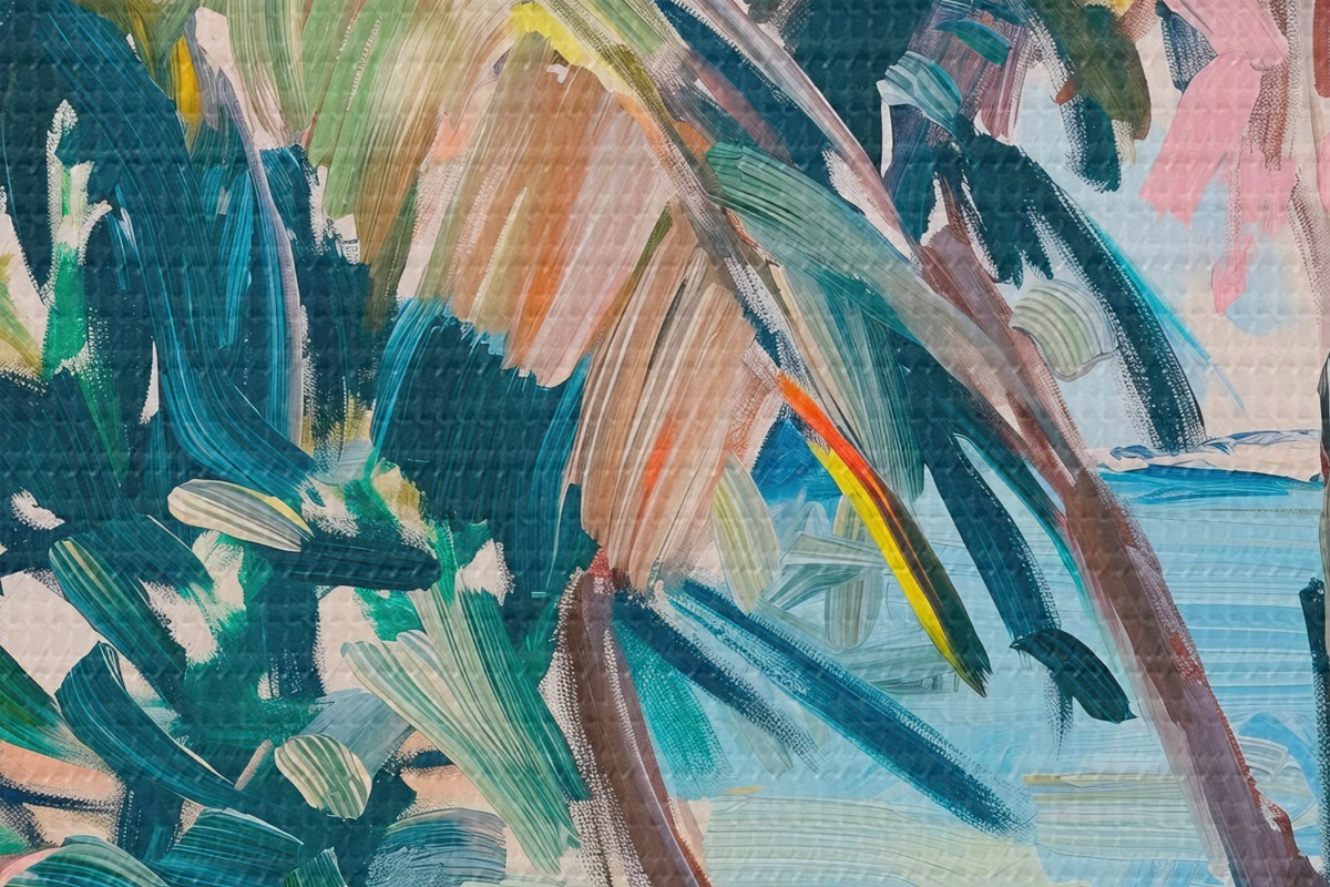 Tableaux rondes Palmiers abstraction, imitation de coups de pinceau r44513