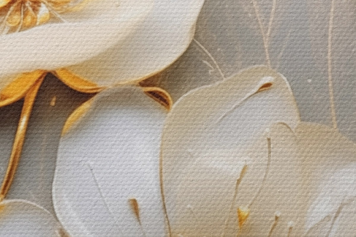Trois types de matériaux peuvent être commandés : Economic Canvas - matériau dense et durable pour l'impression numérique, identique à la toile de peintre, surface imperméable, reproduction réaliste des détails, matériau à grain moyen. Premium Canvas - la texture ressemble à celle d'une toile de peintre (petits fils entrelacés). Reproduction douce et détaillée de l'image sur une surface mate. Eco-Premium - tissu 100 % coton de haute qualité. Grâce aux fibres naturelles de coton, le matériau est durable et résistant à l'usure. Excellente reproduction des couleurs et des détails.