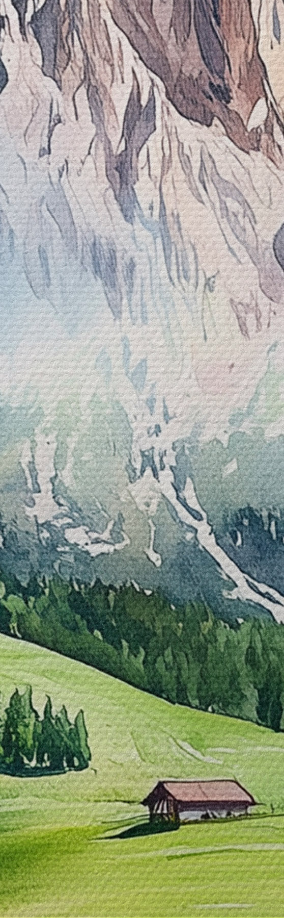 Tableaux rondes Dolomites, montagnes alpines, Italie, paysage, aquarelle r44601