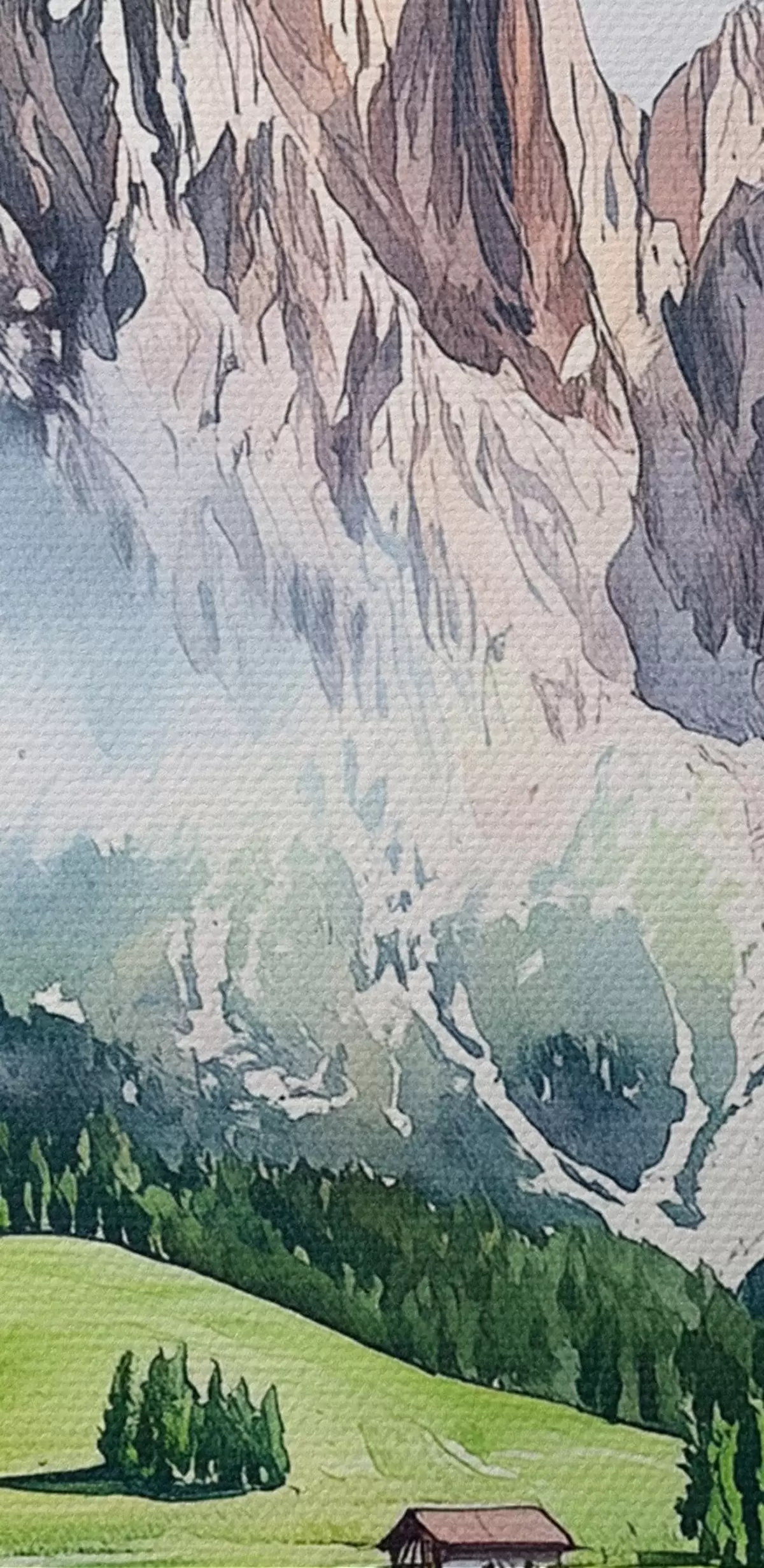 Tableaux rondes Dolomites, montagnes alpines, Italie, paysage, aquarelle r44601