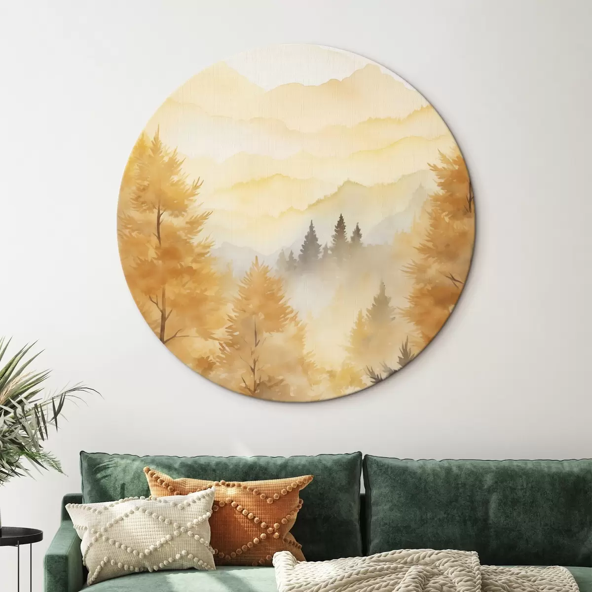 Tableaux rondes Belle forêt d'automne avec des montagnes en arrière-plan Nr r44614