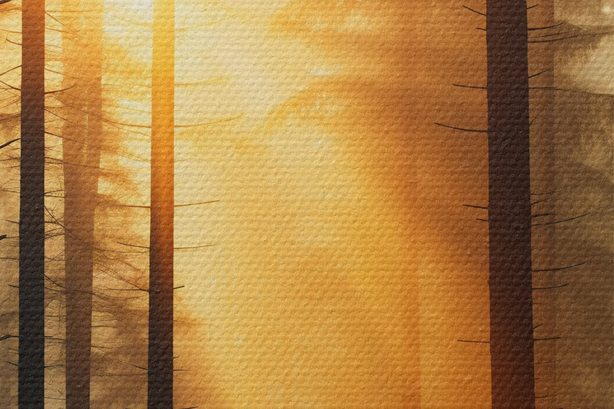 Tableaux rondes Forêt de pins dense avec la lumière du coucher de soleil, réalisme, nature r44615