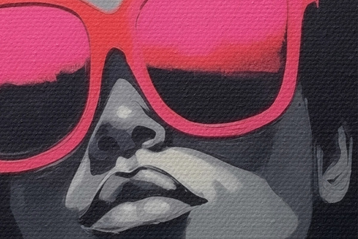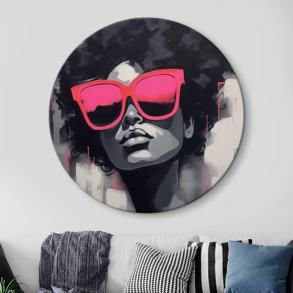 Tableaux rondes Fille avec des lunettes roses, style noir et blanc Nr r44624