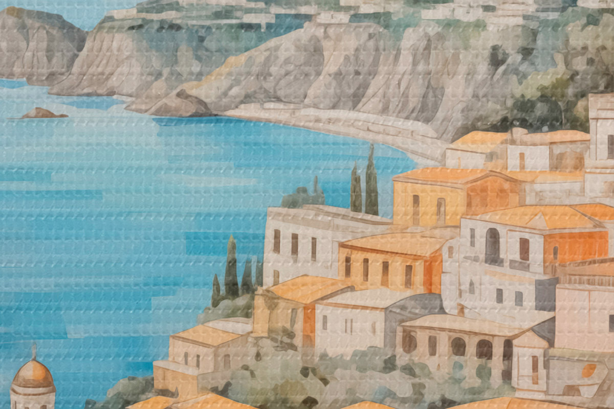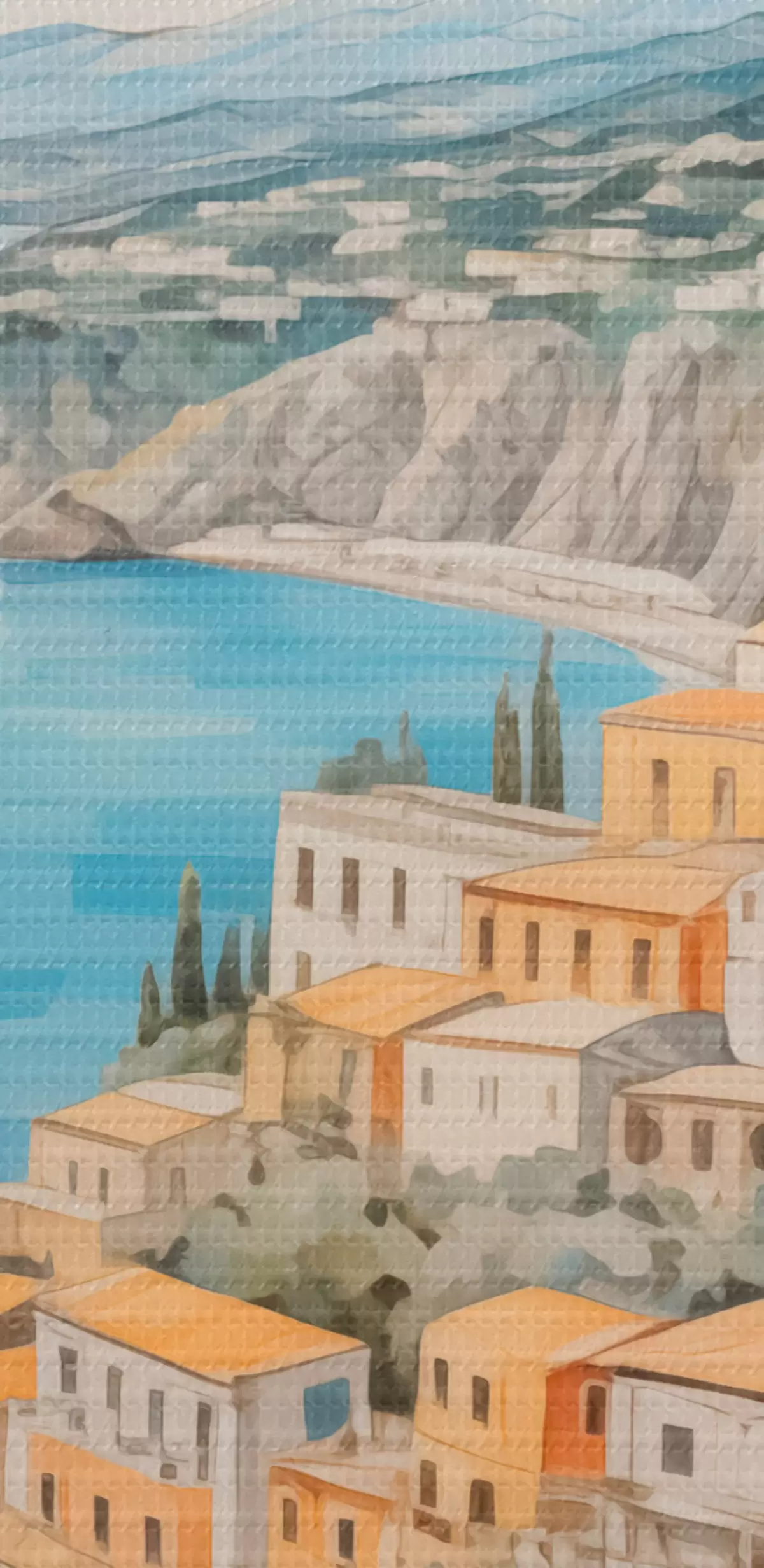 Tableaux rondes Ville au bord de la mer Nr r44694