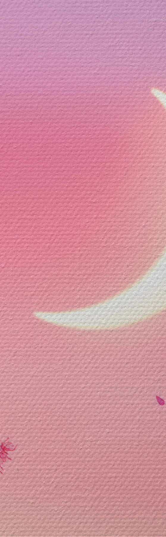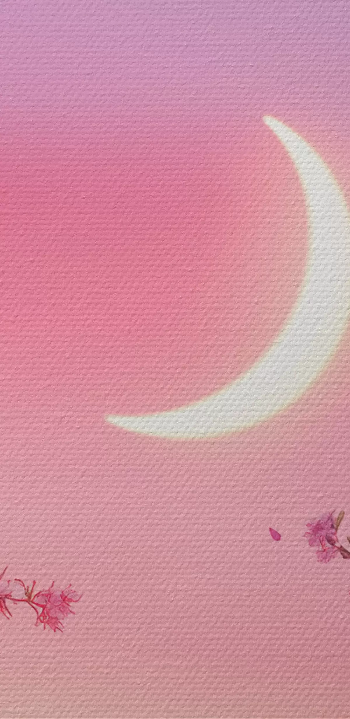 Tableaux rondes Fleur de cerisier, ciel rose avec lune brillante, réalisme Nr r44715