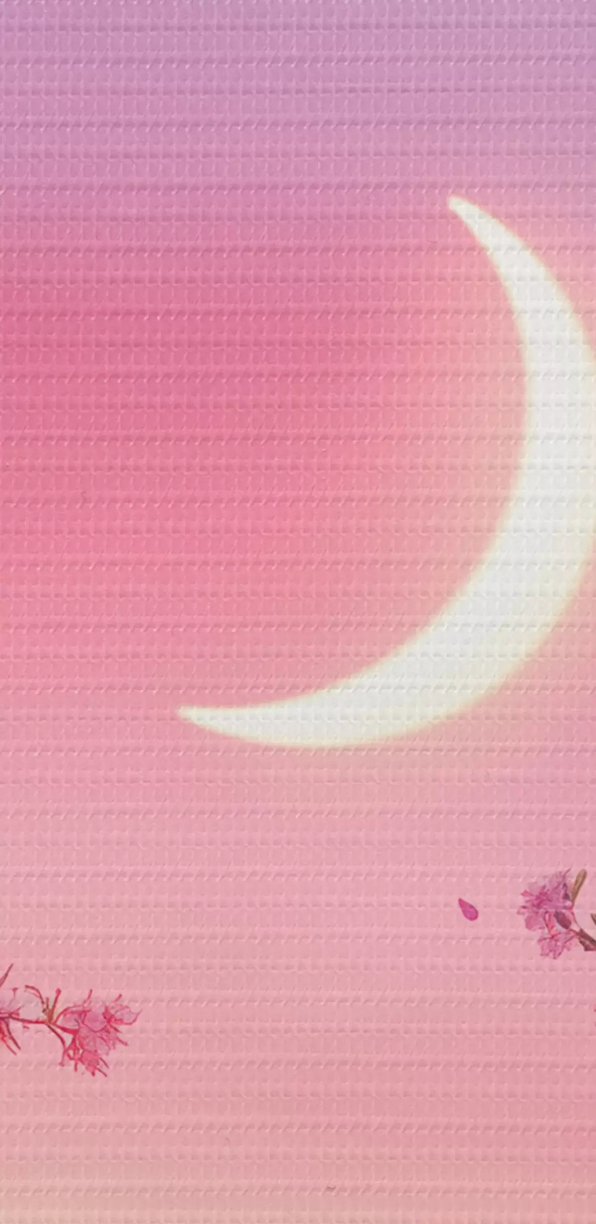 Tableaux rondes Fleur de cerisier, ciel rose avec lune brillante, réalisme r44715