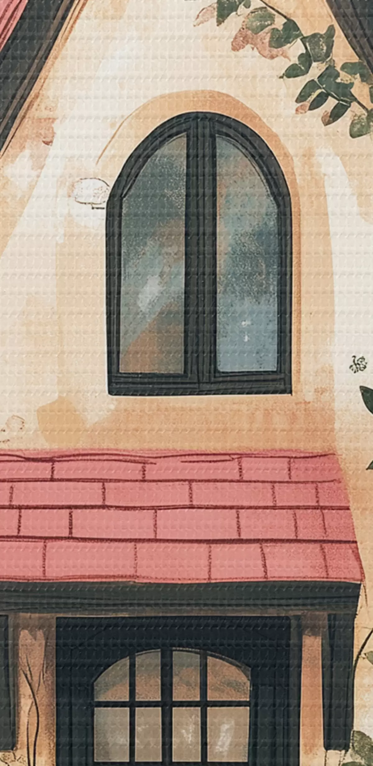 Tableaux rondes Une maison de conte de fées dans les bois, des roses, un style pastel r44718