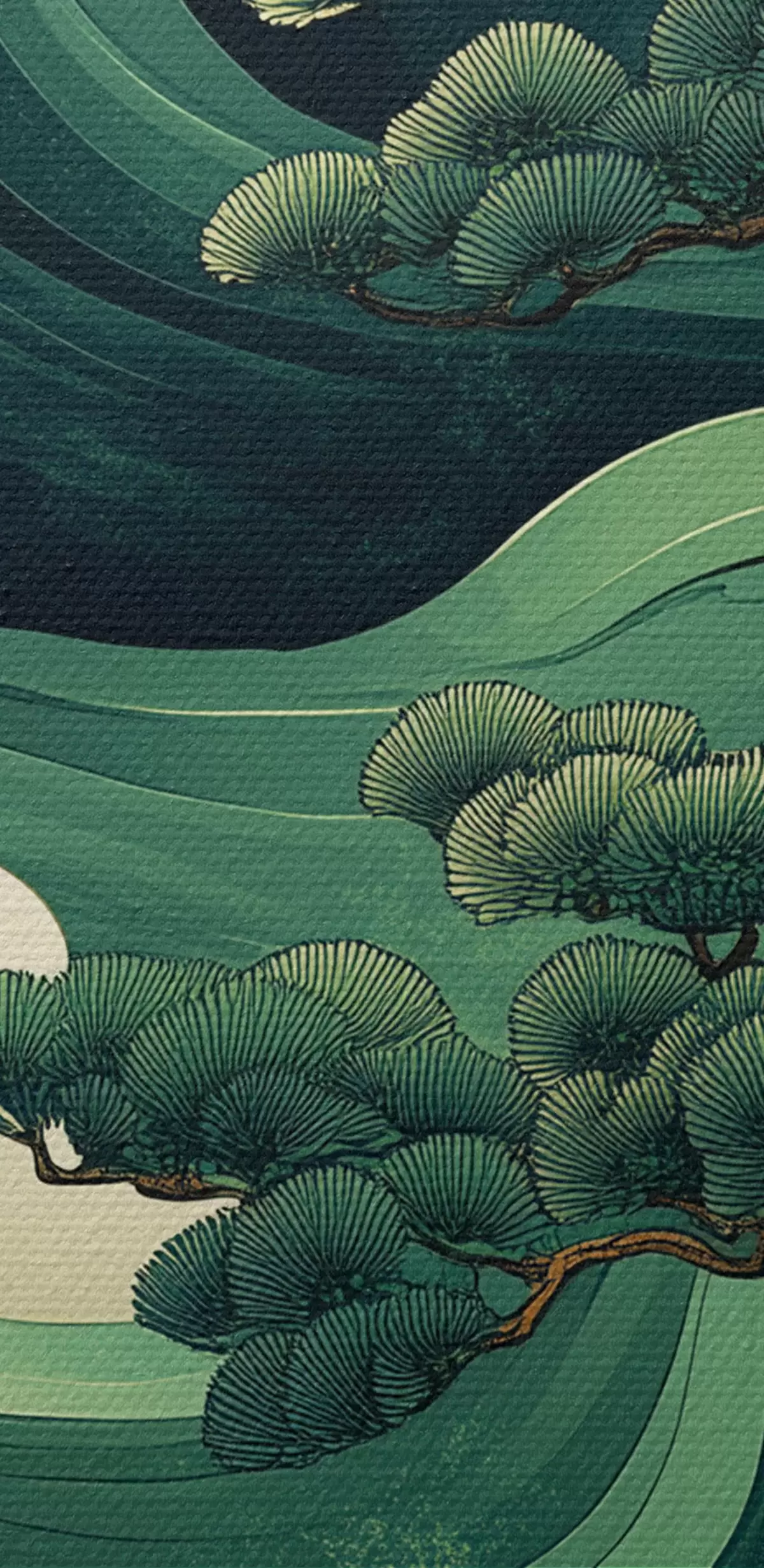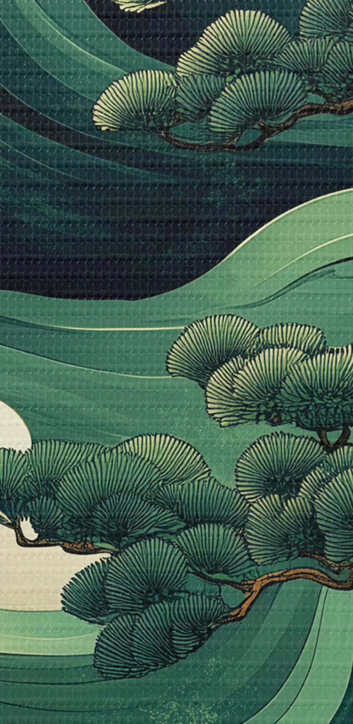 Tableaux rondes Dessin de style chinois avec des vagues et des pins Nr r44719