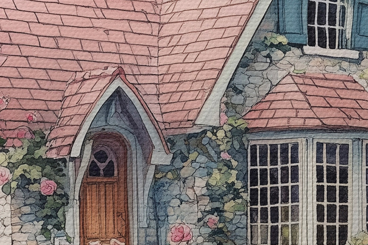 Tableaux rondes Belle maison dans les bouleaux, jardin de roses r44721