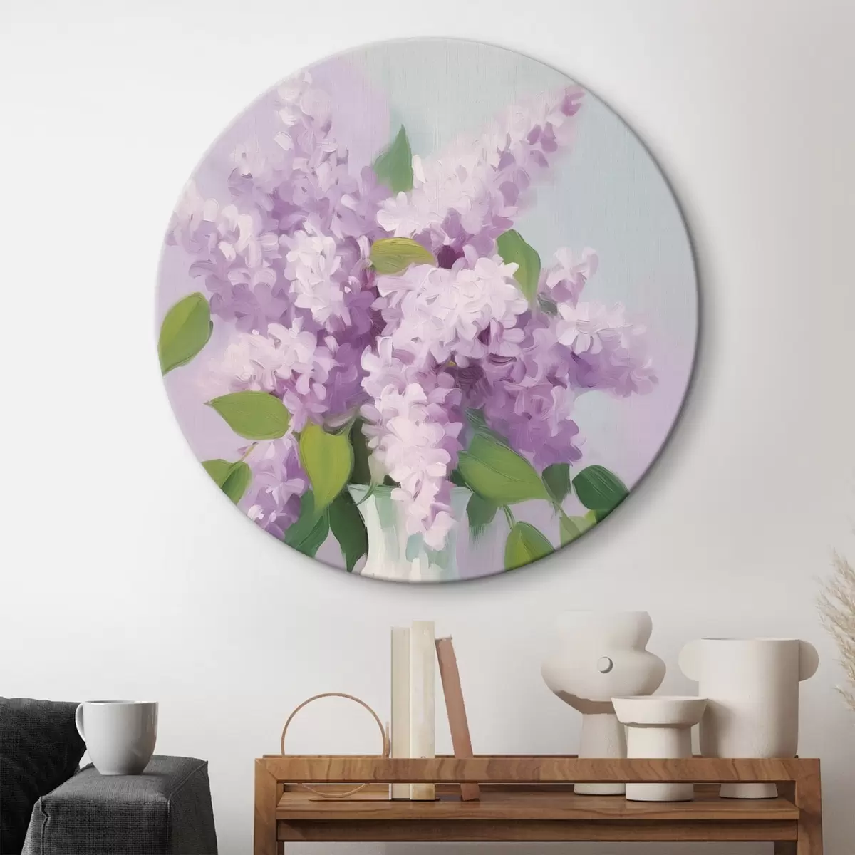 Tableaux rondes Lilas dans un vase blanc r44735