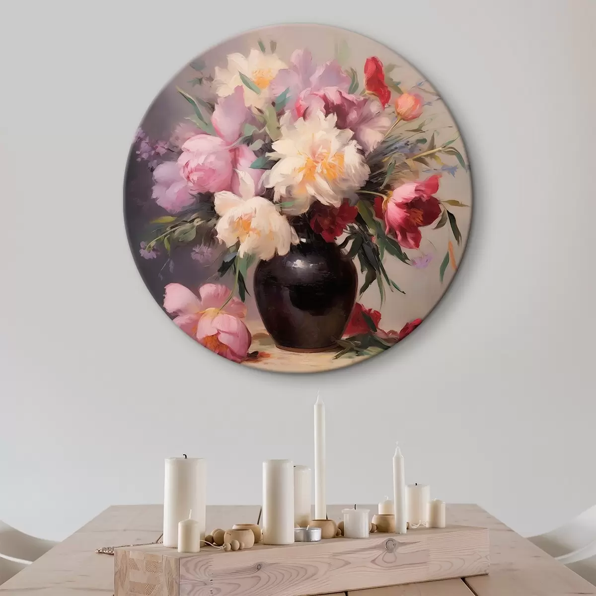 Tableaux rondes Bouquet de pivoines dans un vase foncé Nr r44769