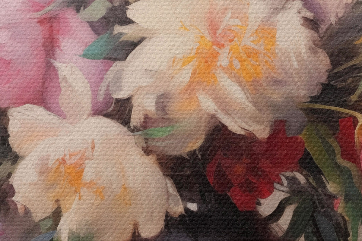Trois types de matériaux peuvent être commandés : Economic Canvas - matériau dense et durable pour l'impression numérique, identique à la toile de peintre, surface imperméable, reproduction réaliste des détails, matériau à grain moyen. Premium Canvas - la texture ressemble à celle d'une toile de peintre (petits fils entrelacés). Reproduction douce et détaillée de l'image sur une surface mate. Eco-Premium - tissu 100 % coton de haute qualité. Grâce aux fibres naturelles de coton, le matériau est durable et résistant à l'usure. Excellente reproduction des couleurs et des détails.