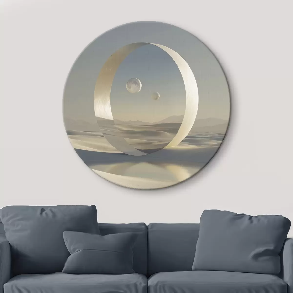 Tableaux rondes Paysage futuriste avec dunes et planètes Nr r44791