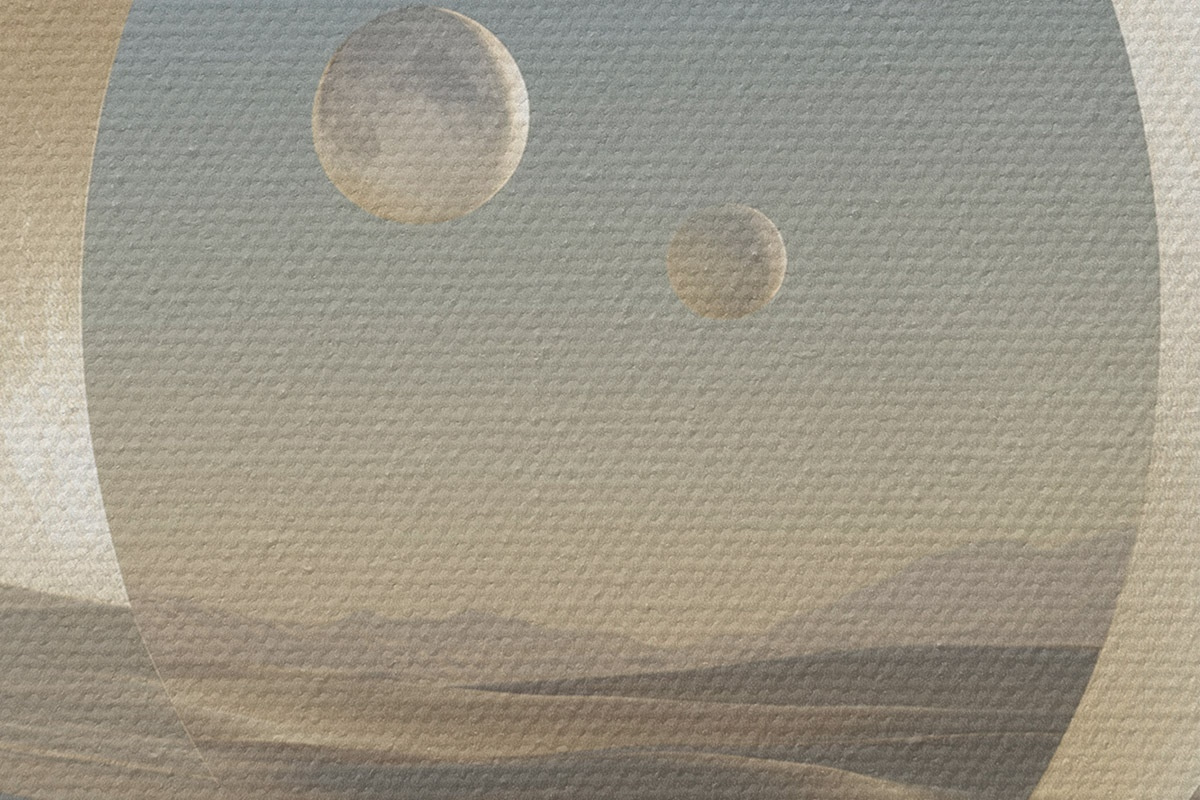 Tableaux rondes Paysage futuriste avec dunes et planètes r44791