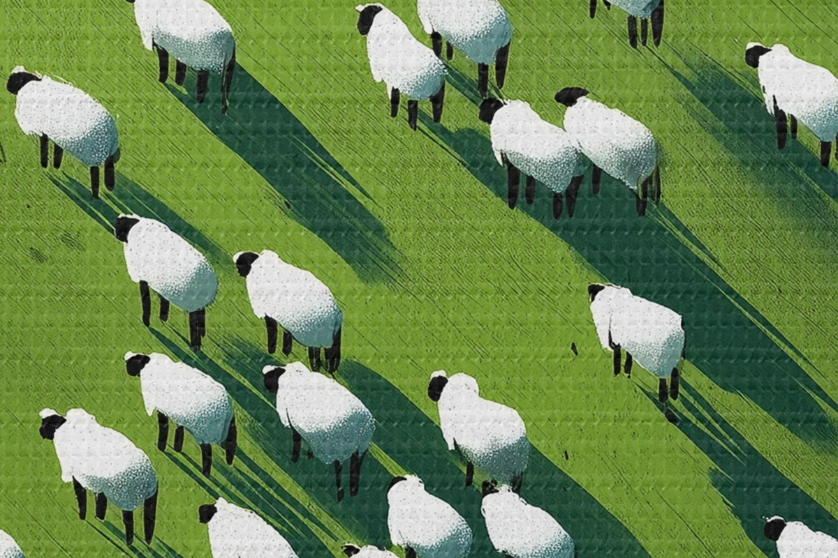 Tableaux rondes Champ vert avec un troupeau de moutons, abstraction, vue aérienne r44793