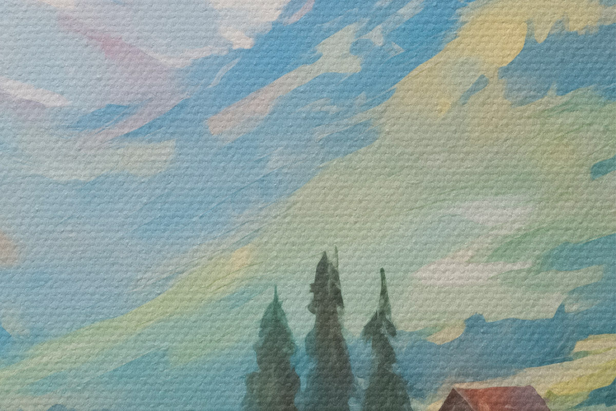 Trois types de matériaux peuvent être commandés : Economic Canvas - matériau dense et durable pour l'impression numérique, identique à la toile de peintre, surface imperméable, reproduction réaliste des détails, matériau à grain moyen. Premium Canvas - la texture ressemble à celle d'une toile de peintre (petits fils entrelacés). Reproduction douce et détaillée de l'image sur une surface mate. Eco-Premium - tissu 100 % coton de haute qualité. Grâce aux fibres naturelles de coton, le matériau est durable et résistant à l'usure. Excellente reproduction des couleurs et des détails.