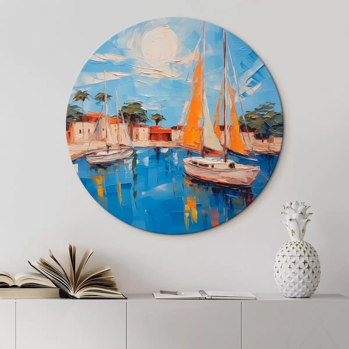 Tableaux rondes Voilier à l'embarcadère Nr r44824