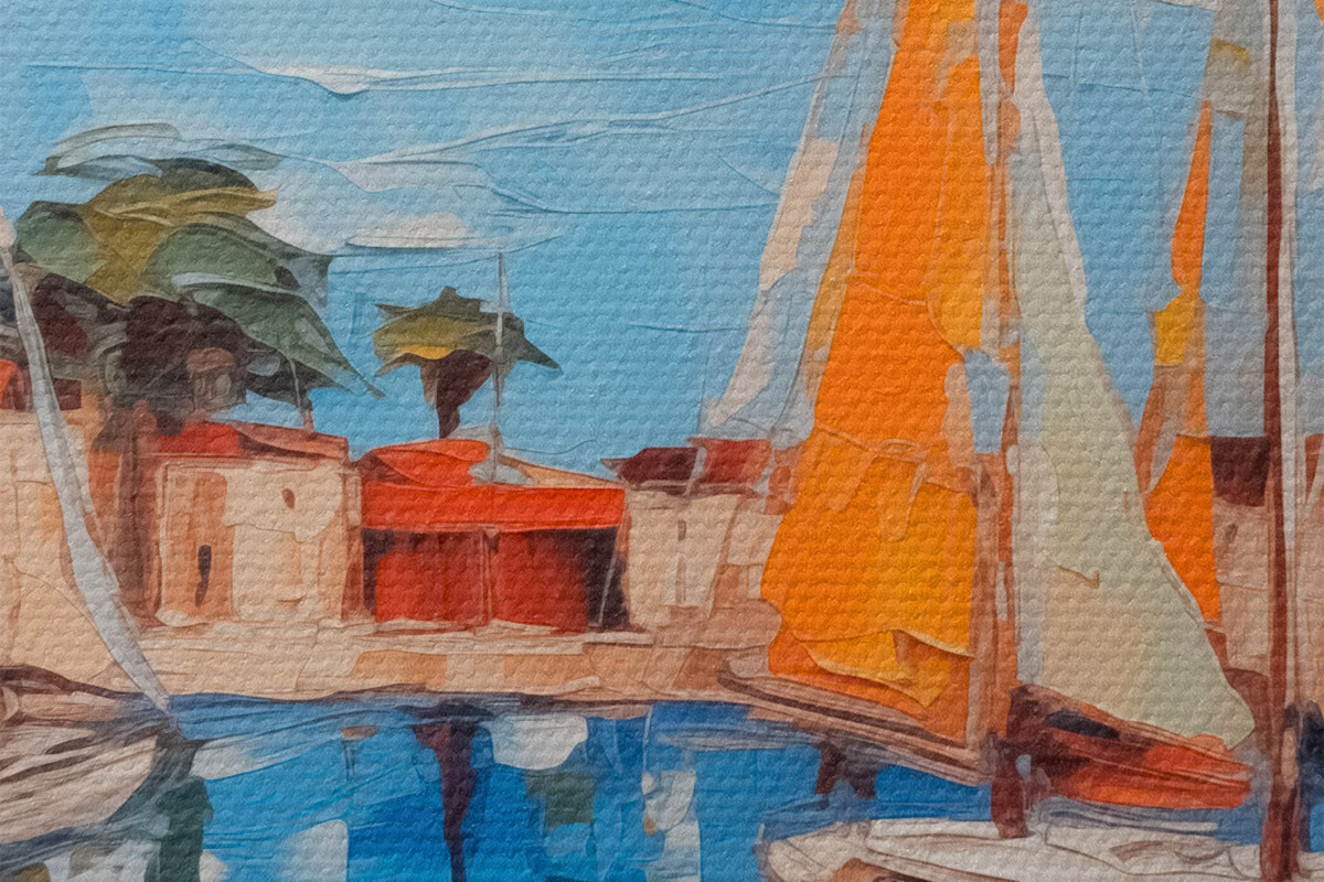 Trois types de matériaux peuvent être commandés : Economic Canvas - matériau dense et durable pour l'impression numérique, identique à la toile de peintre, surface imperméable, reproduction réaliste des détails, matériau à grain moyen. Premium Canvas - la texture ressemble à celle d'une toile de peintre (petits fils entrelacés). Reproduction douce et détaillée de l'image sur une surface mate. Eco-Premium - tissu 100 % coton de haute qualité. Grâce aux fibres naturelles de coton, le matériau est durable et résistant à l'usure. Excellente reproduction des couleurs et des détails.