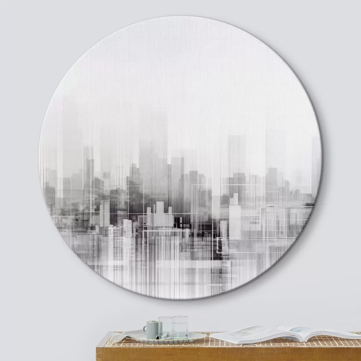 Tableaux rondes Paysage urbain minimaliste texturé avec de grands bâtiments et des gratte-ciel, silhouettés sur un ciel blanc Nr r44863
