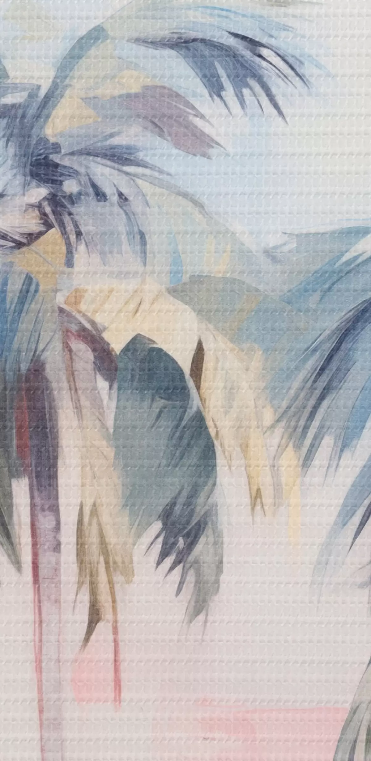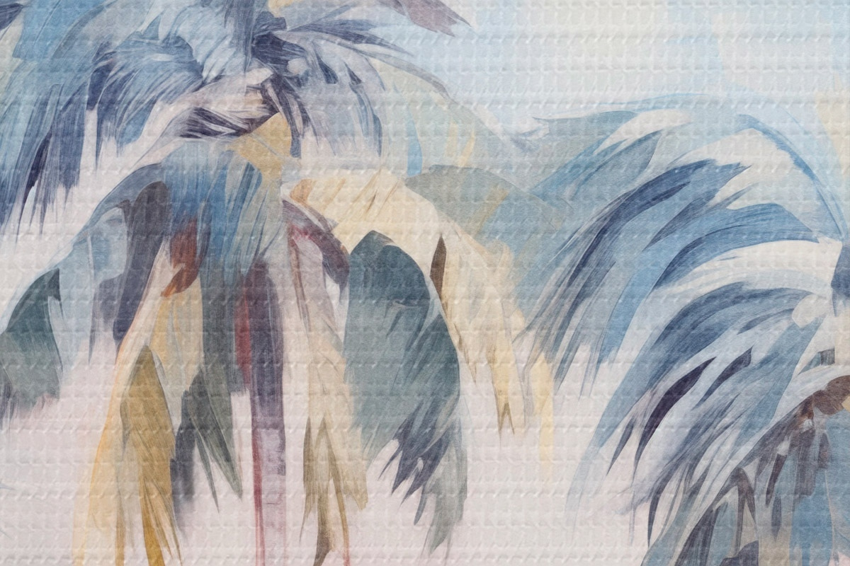 Tableaux rondes Palmiers aux feuilles pastel et aux troncs bruns, ciel rose et bleu, environnement tropical Nr r44866