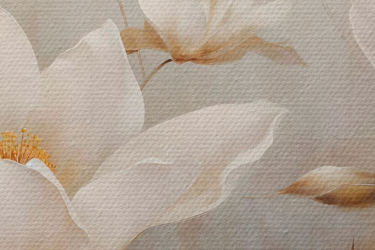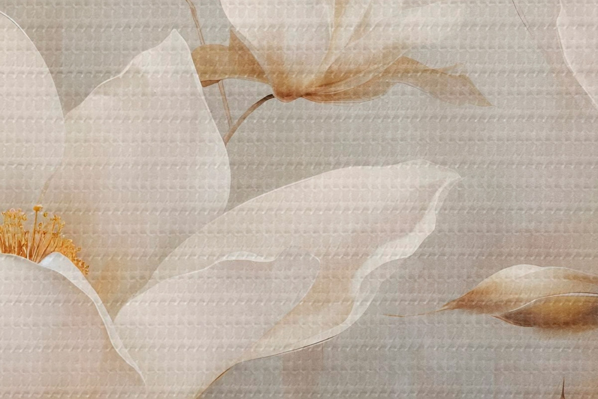 Tableaux rondes Fleurs de magnolia blanches texturées sur des branches sur un fond marron clair r44869