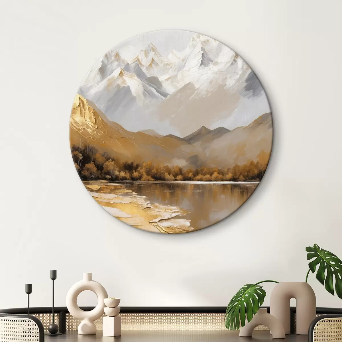 Tableaux rondes Paysage de montagne avec un lac dans des couleurs chaudes Nr r44877