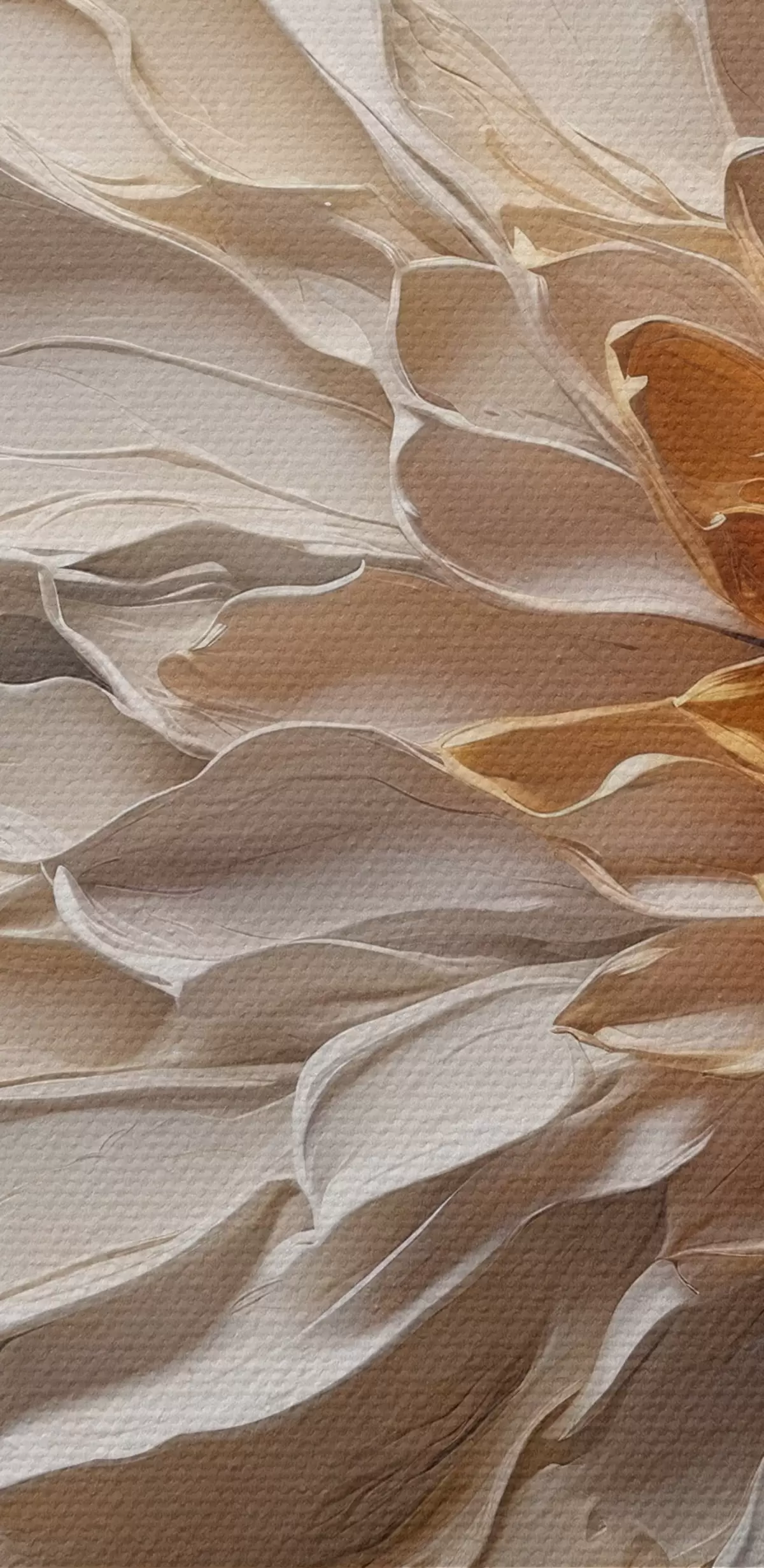 Tableaux rondes Fleur volumétrique aux pétales crémeux et au cœur chaud r44878