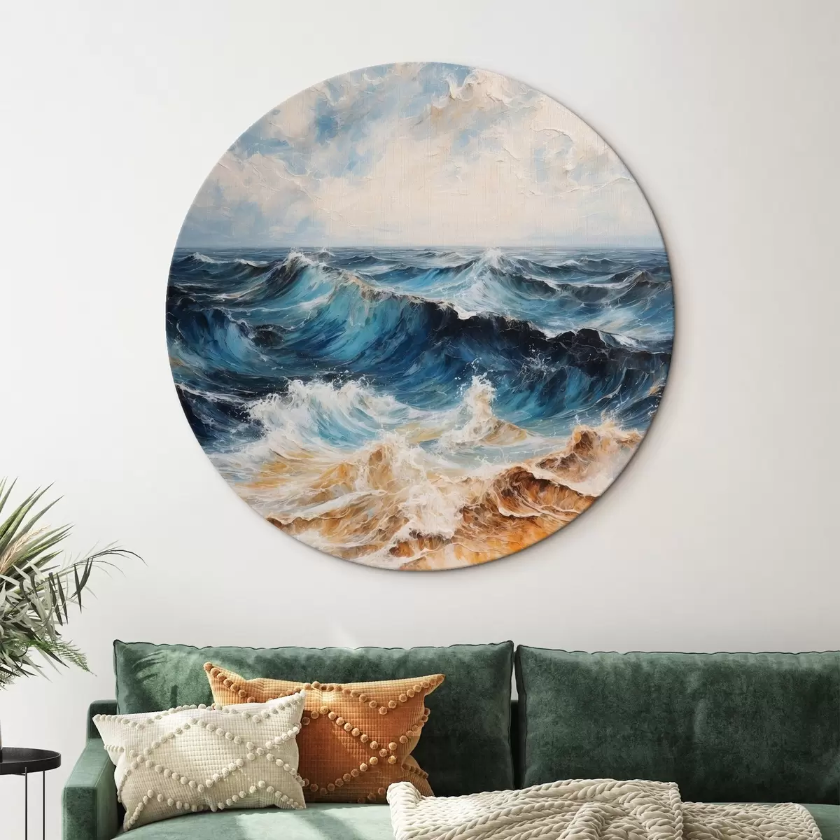 Tableaux rondes Mer agitée avec des vagues sous un ciel clair Nr r44881