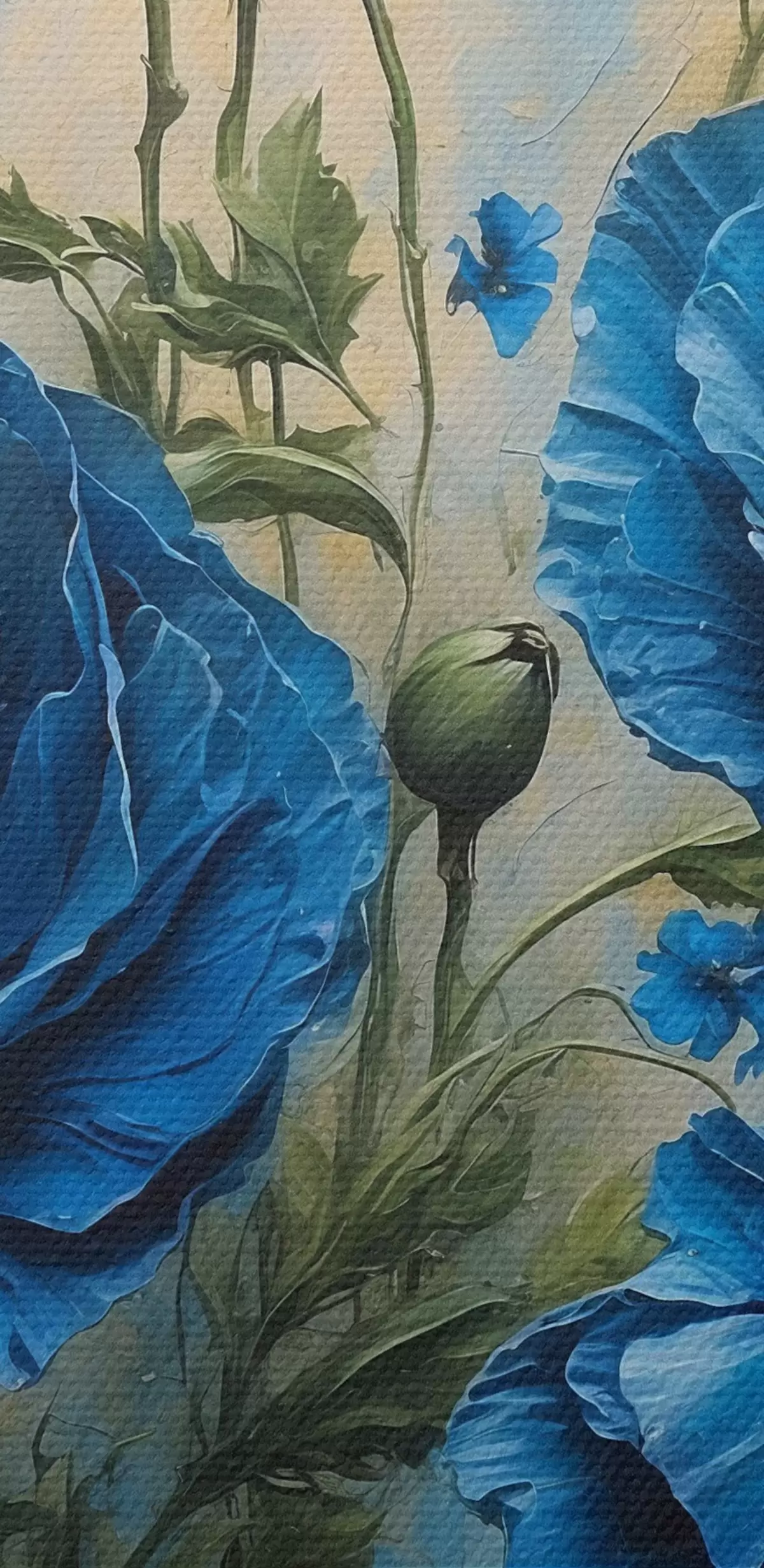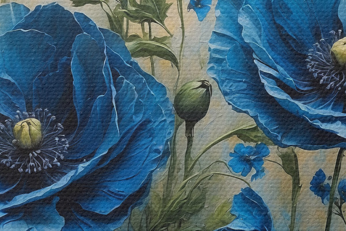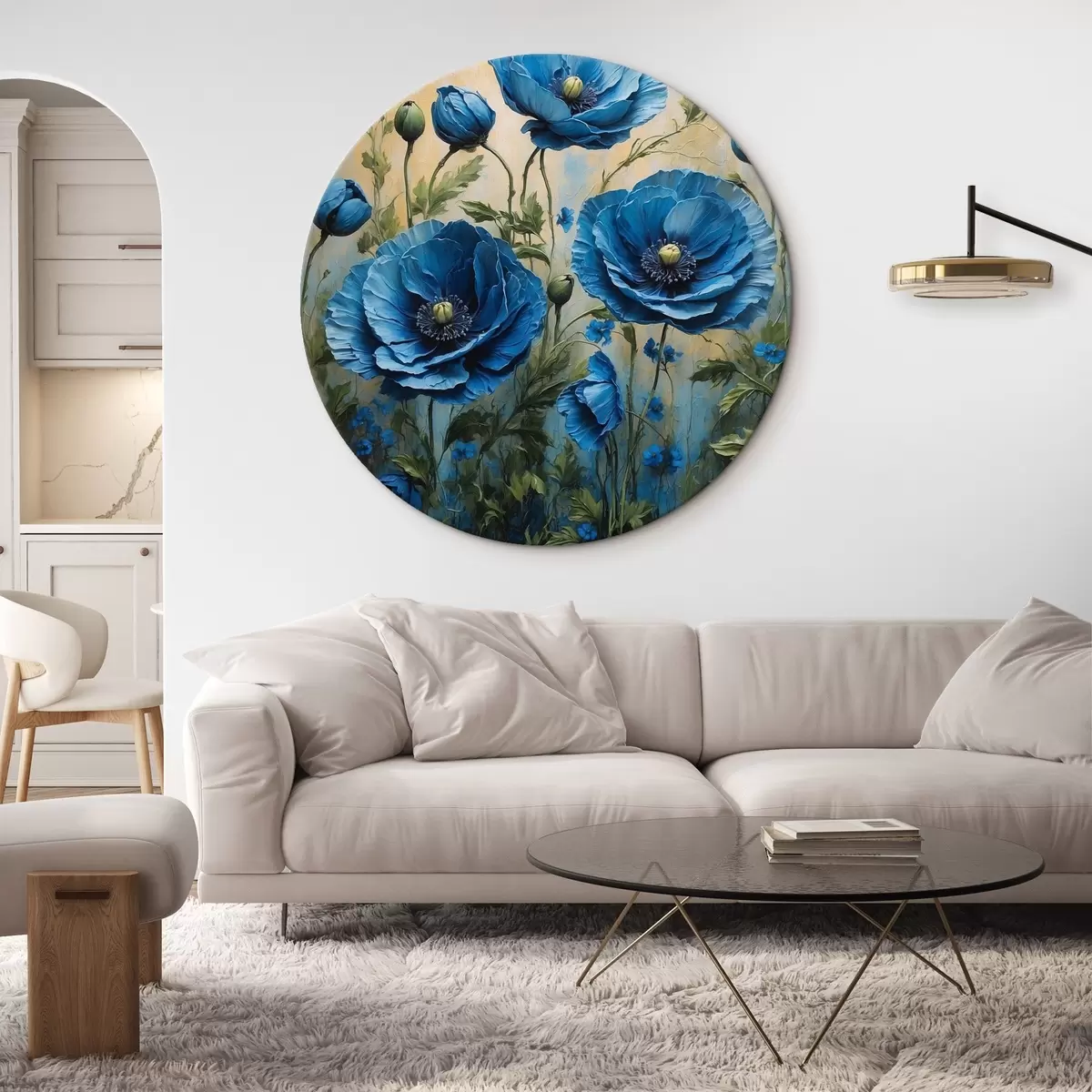 Tableaux rondes Coquelicots bleus sur fond pastel avec des feuilles r44882