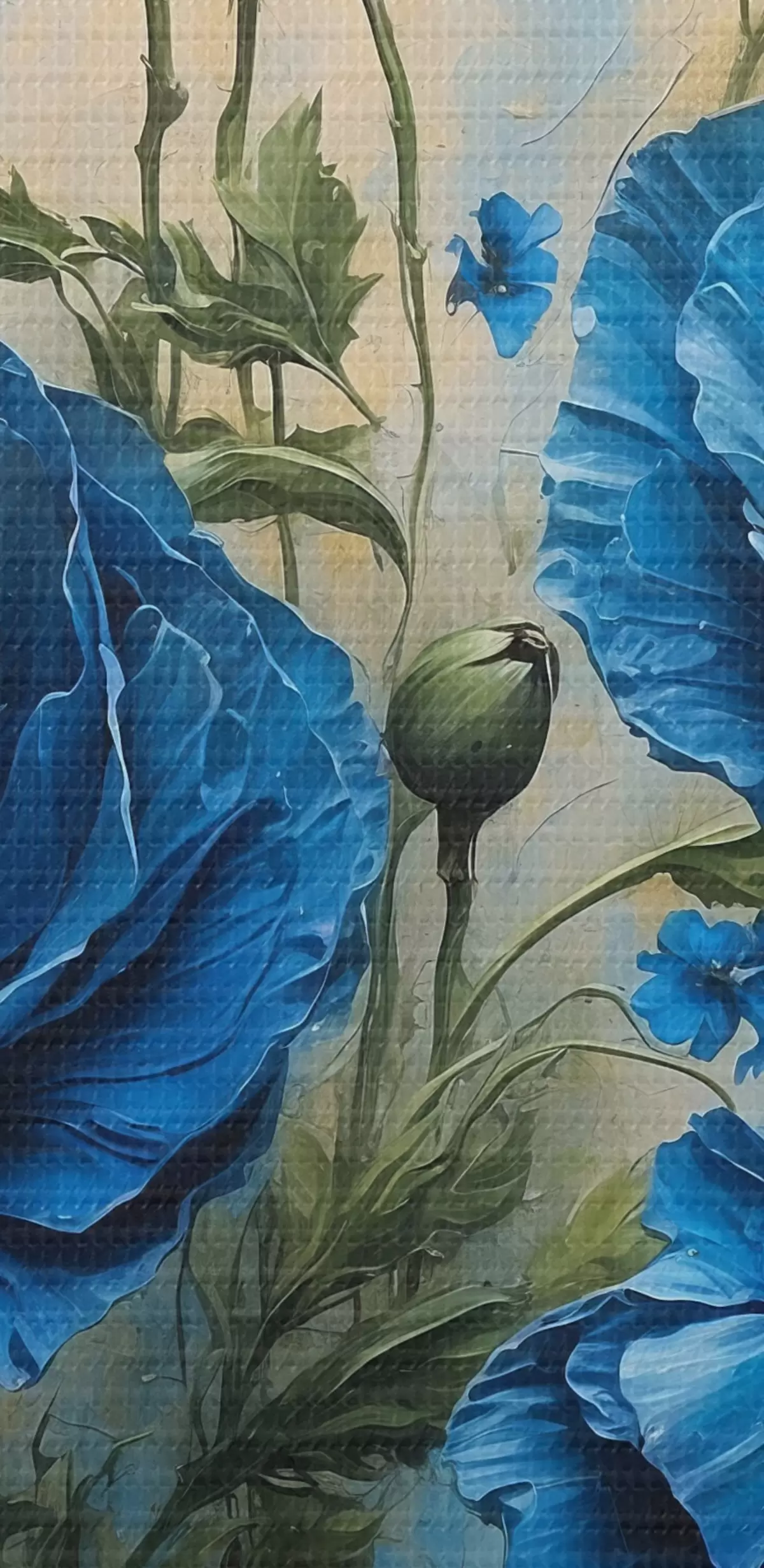 Tableaux rondes Coquelicots bleus sur fond pastel avec des feuilles Nr r44882