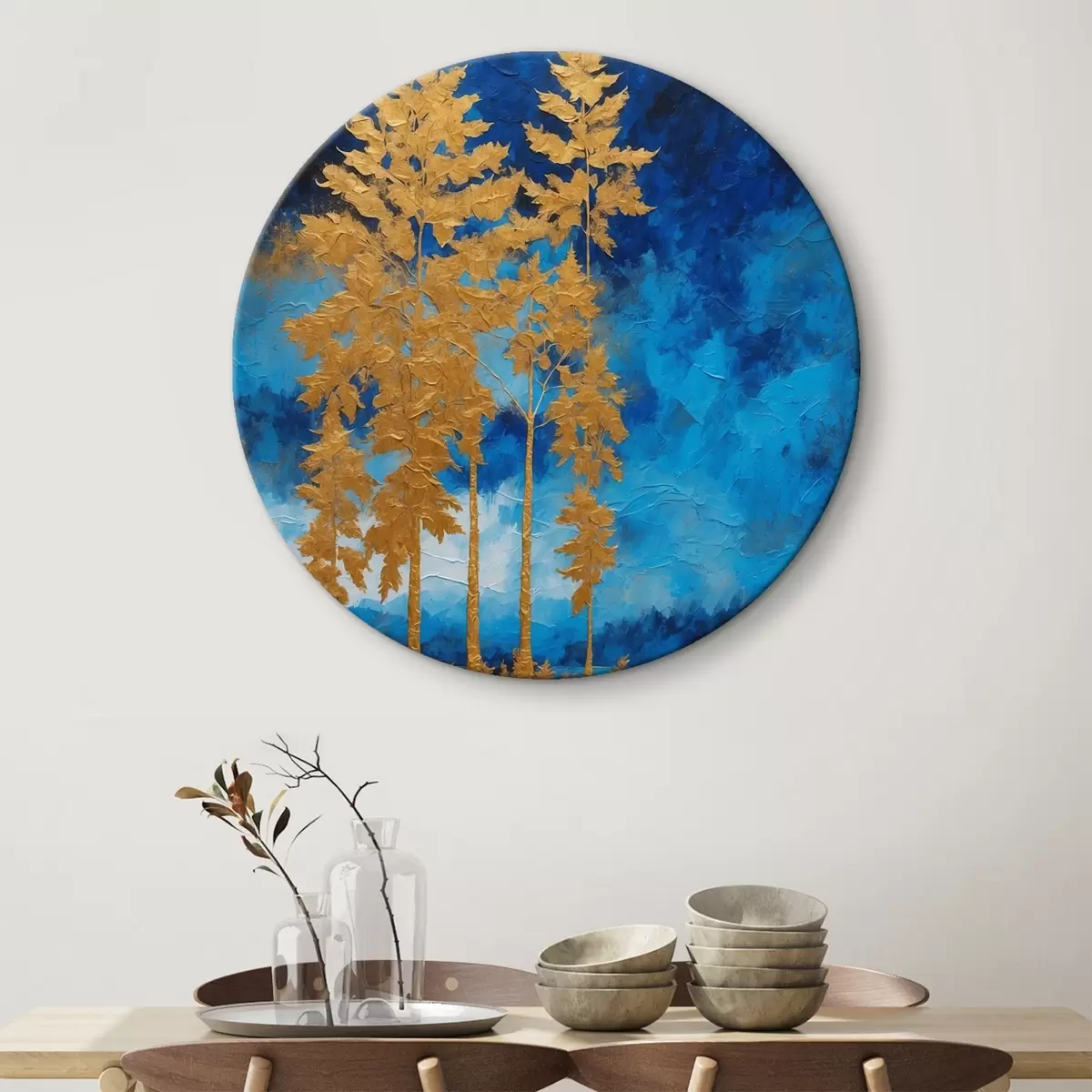 Tableaux rondes Arbres sur fond de ciel nocturne dans les tons bleus Nr r44888