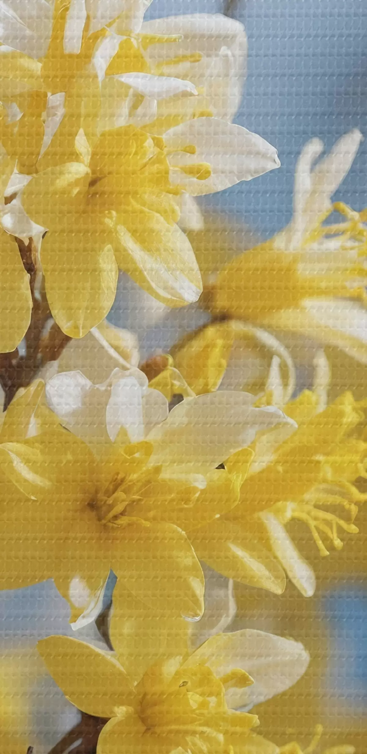 Tableaux rondes Fleurs jaunes sur fond bleu avec mise au point douce r44894