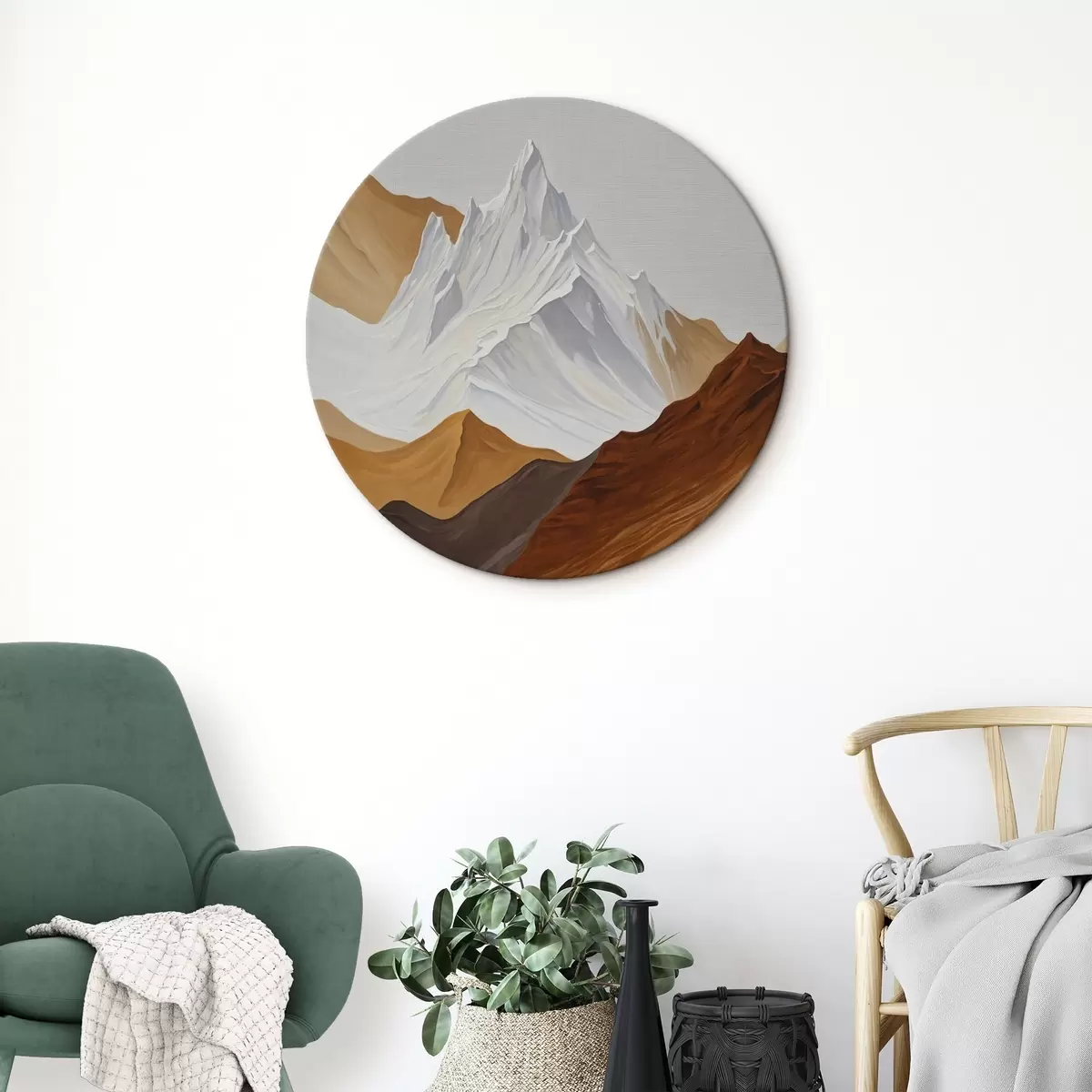 Tableaux rondes Paysage géométrique de montagne dans les tons bruns et blancs Nr r44896