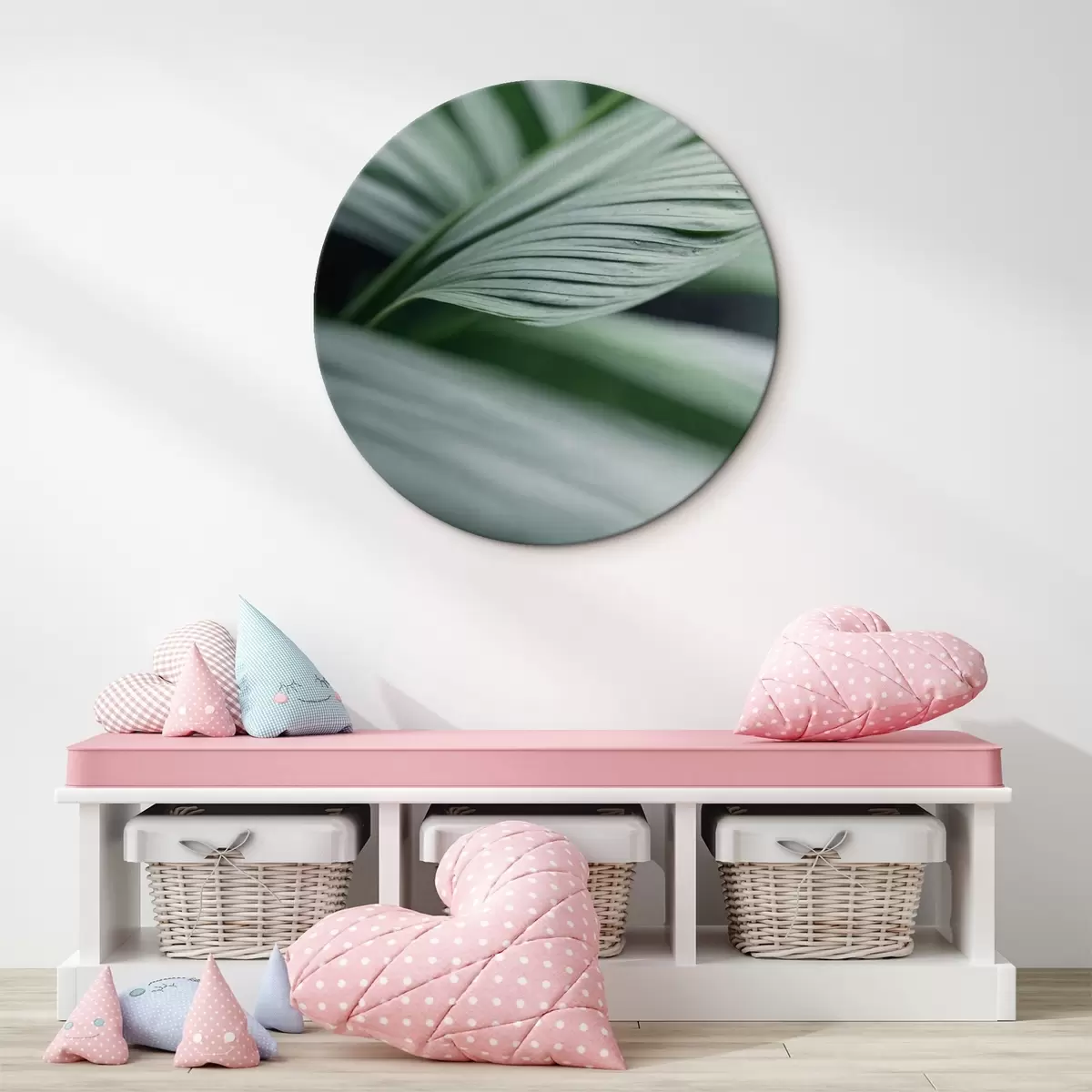 Tableaux rondes Feuilles tropicales avec gouttelettes d'eau dans un environnement brumeux Nr r44903