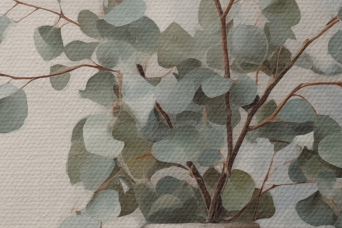 Tableaux rondes Branches d'eucalyptus dans un vase en argile Nr r44906