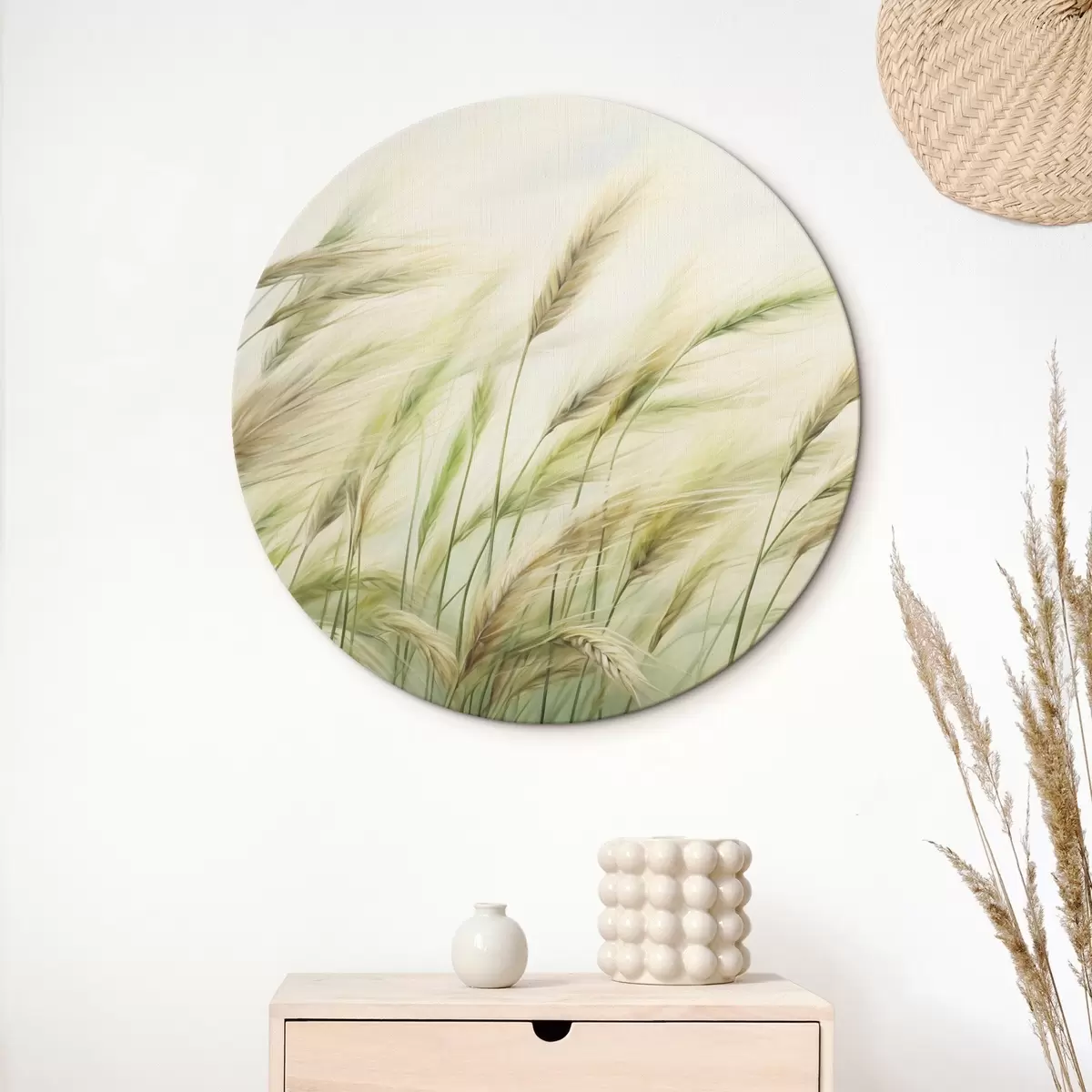 Tableaux rondes Champ de blé avec des épis jaunes et verts, coups de pinceau doux et palette de couleurs claires, atmosphère naturelle Nr r44923