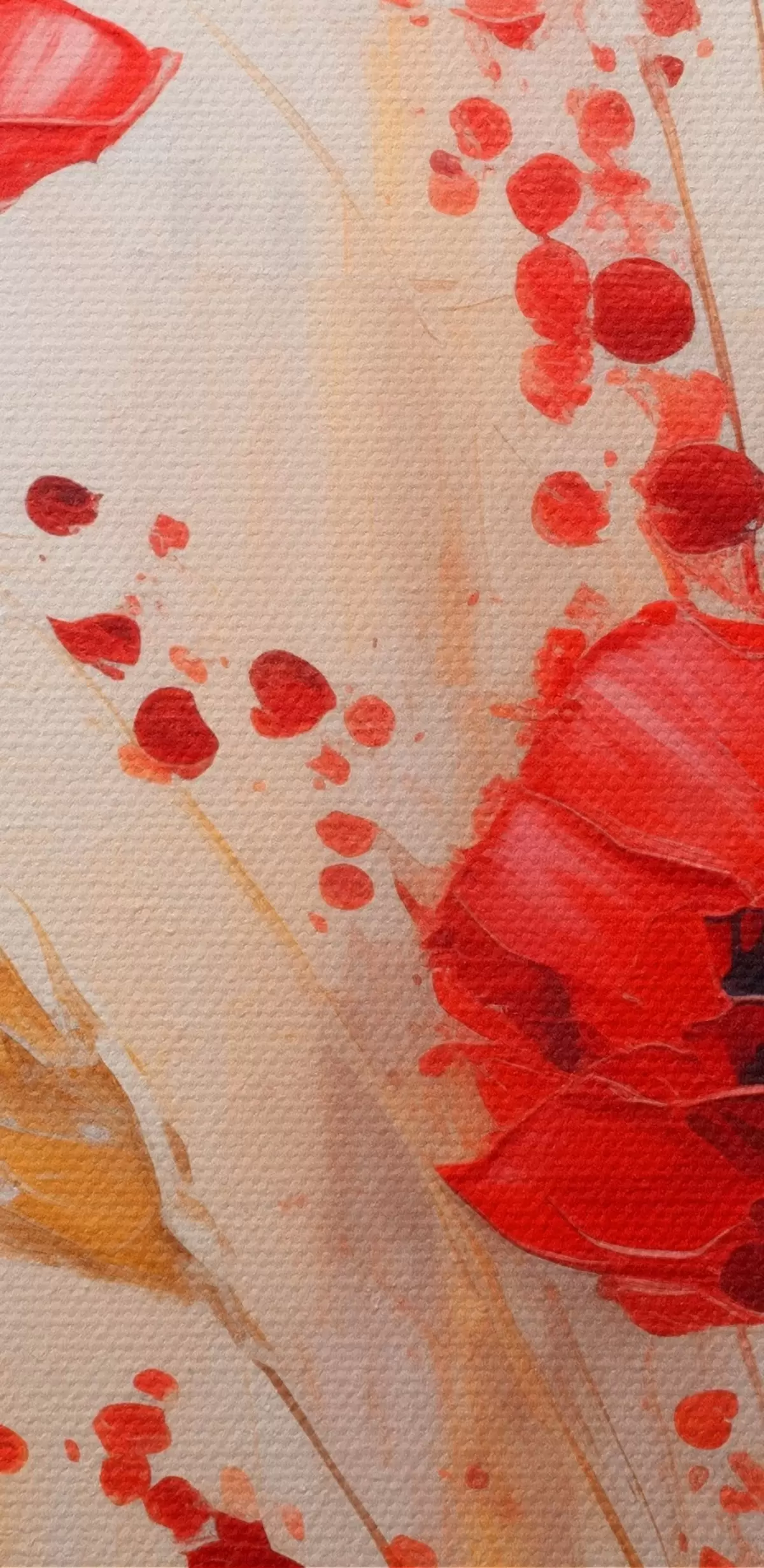 Tableaux rondes Fleurs de coquelicots rouges et tiges de blé jaunes, sur un fond doux et neutre avec des éclaboussures de peinture rouge r44926